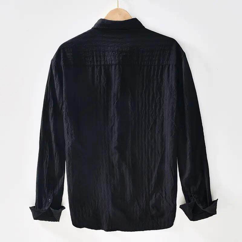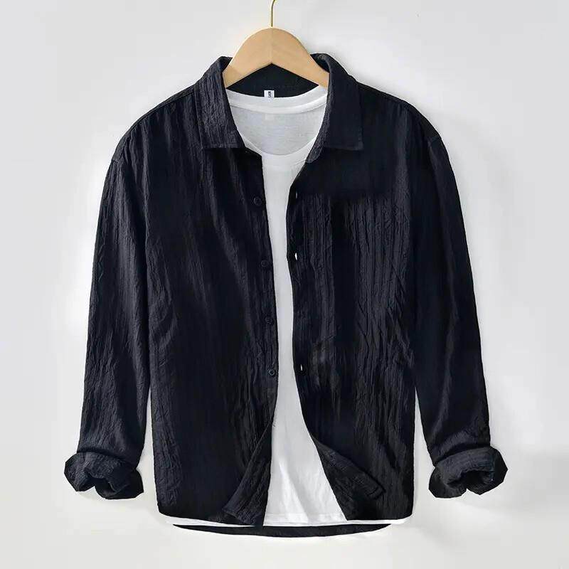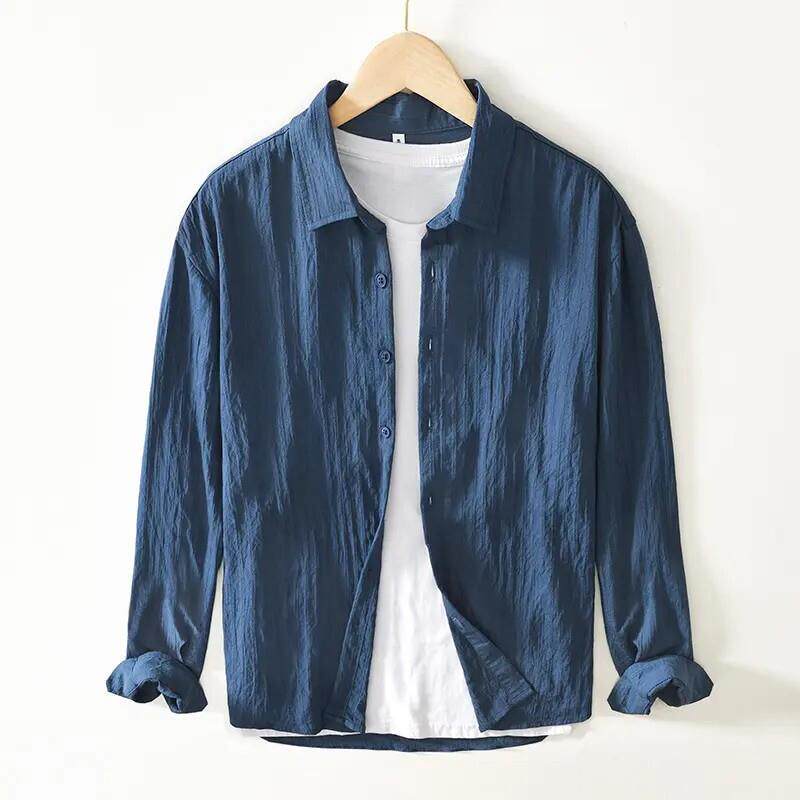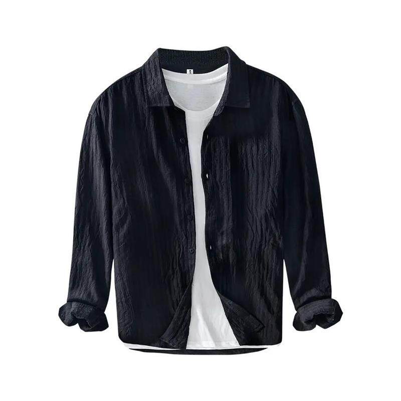 柏朗男装品质甄选老钱衬衫男款痞帅高级宽松长袖商务薄款外套t恤
