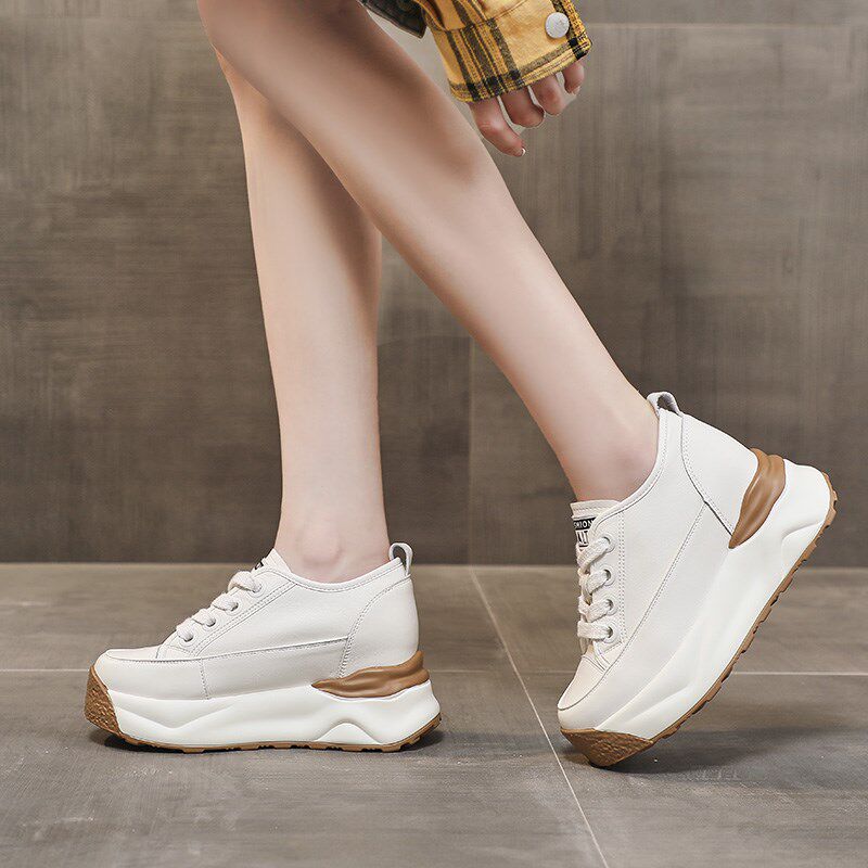 厚底内增高女鞋8cm春秋小个子运动鞋白色休闲鞋小白鞋软底老爹鞋
