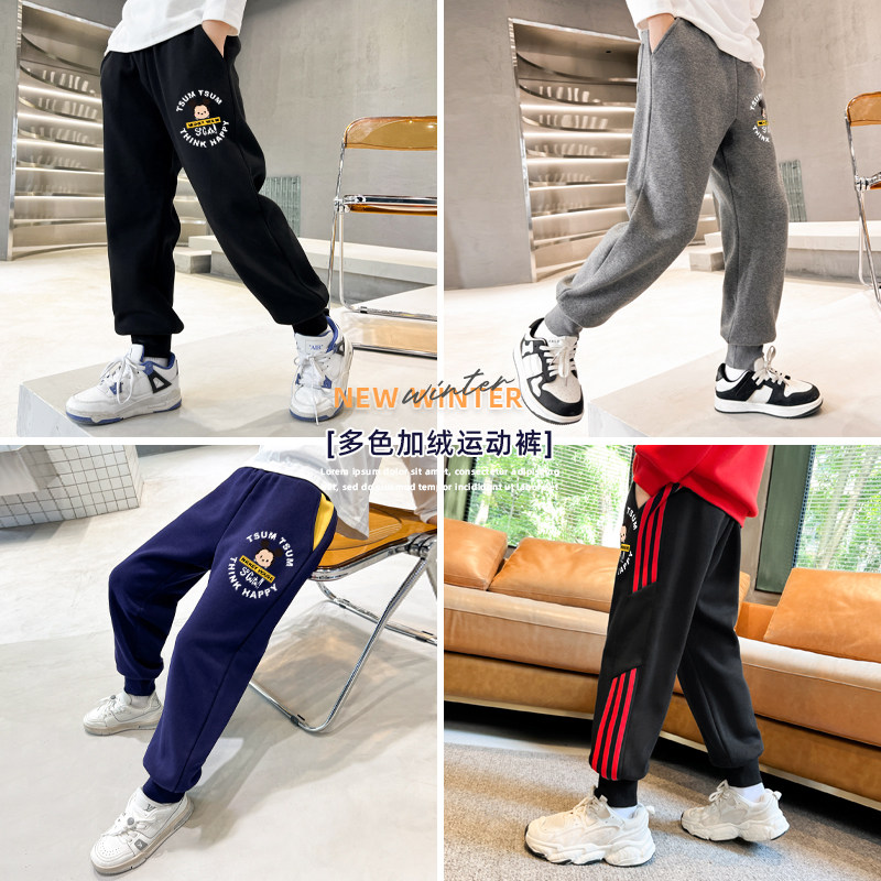 贝田男童加绒裤子加厚冬季儿童帅气洋气运动裤冬款男孩休闲裤卫裤