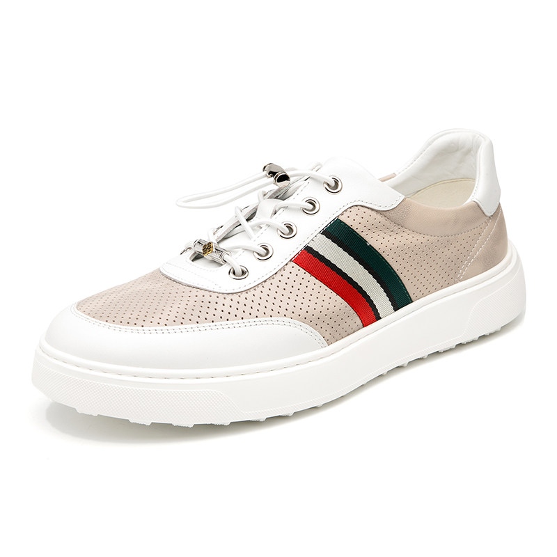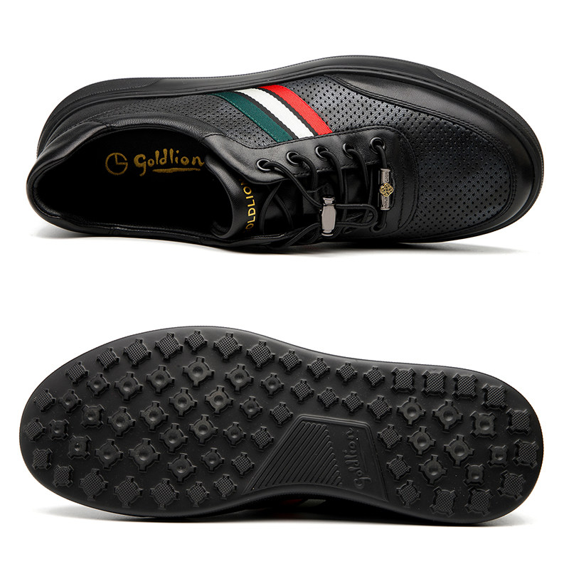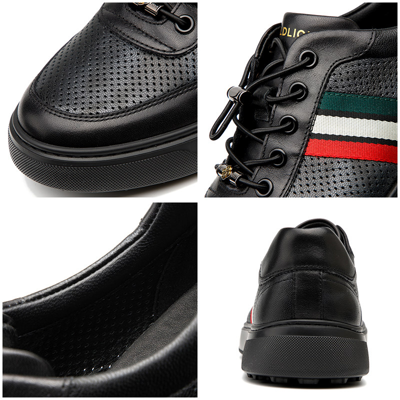 金利来男鞋夏季冲孔镂空网眼透气真皮时尚休闲男士洞洞皮凉鞋板鞋