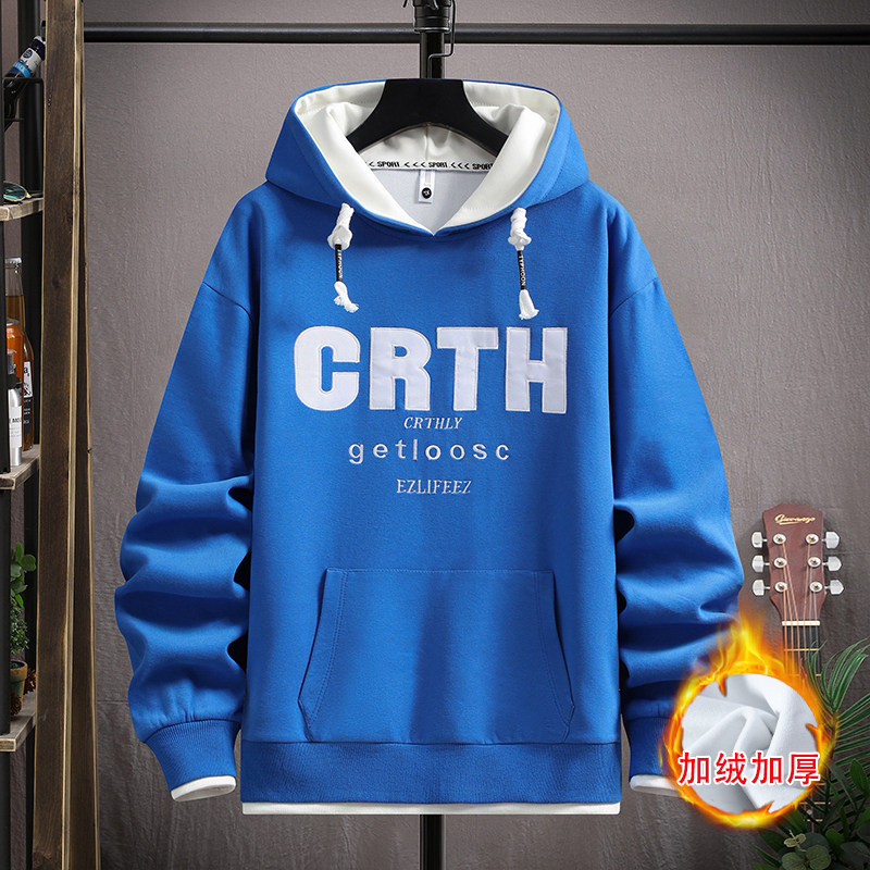 13青少年秋冬季加绒卫衣12岁男孩初中学生连帽加厚纯棉上衣15大童