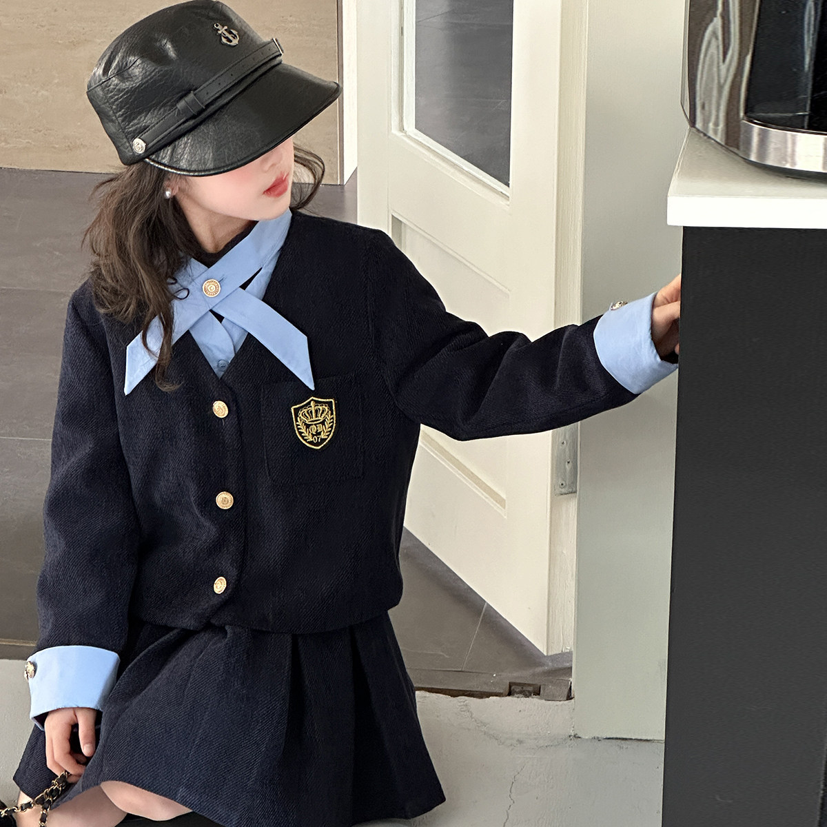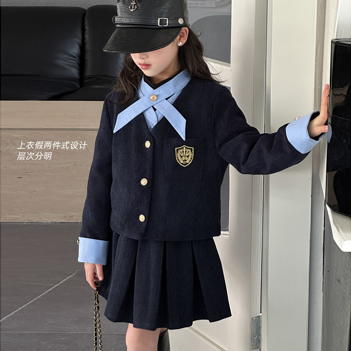 女童羽绒服套装2025冬季新款儿童学院风加厚假两件上衣裙子半身裙