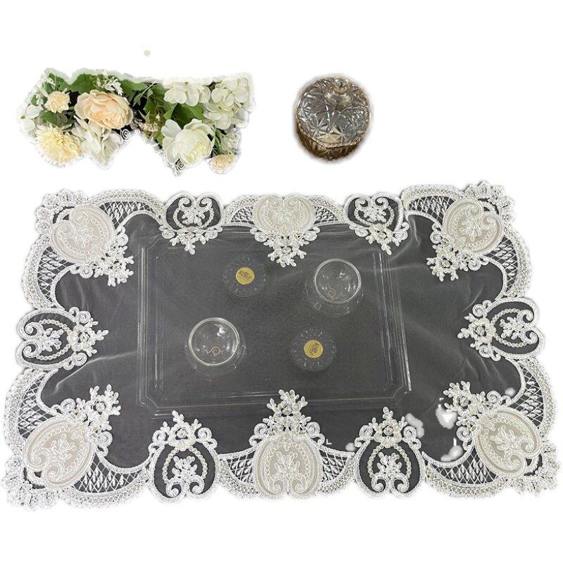 欧式蕾丝绣花长方形茶盘茶具托盘盖巾家用2022新款微波炉防尘盖布