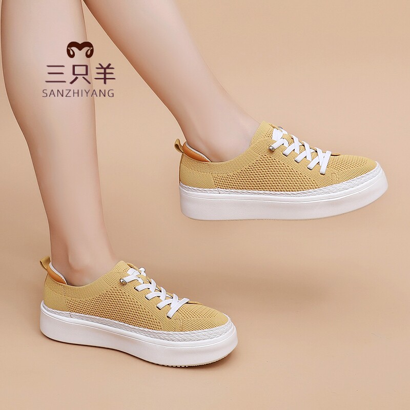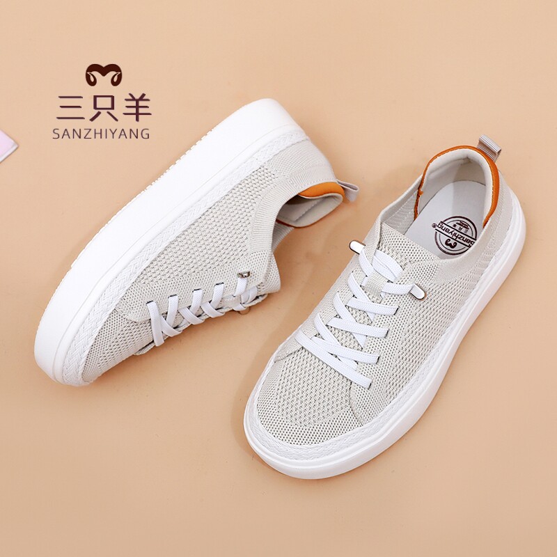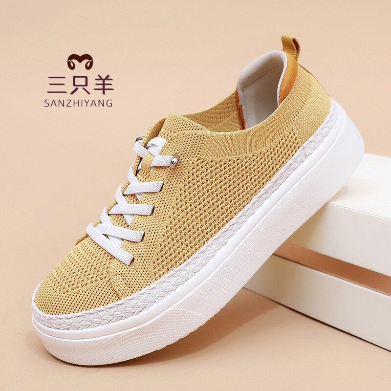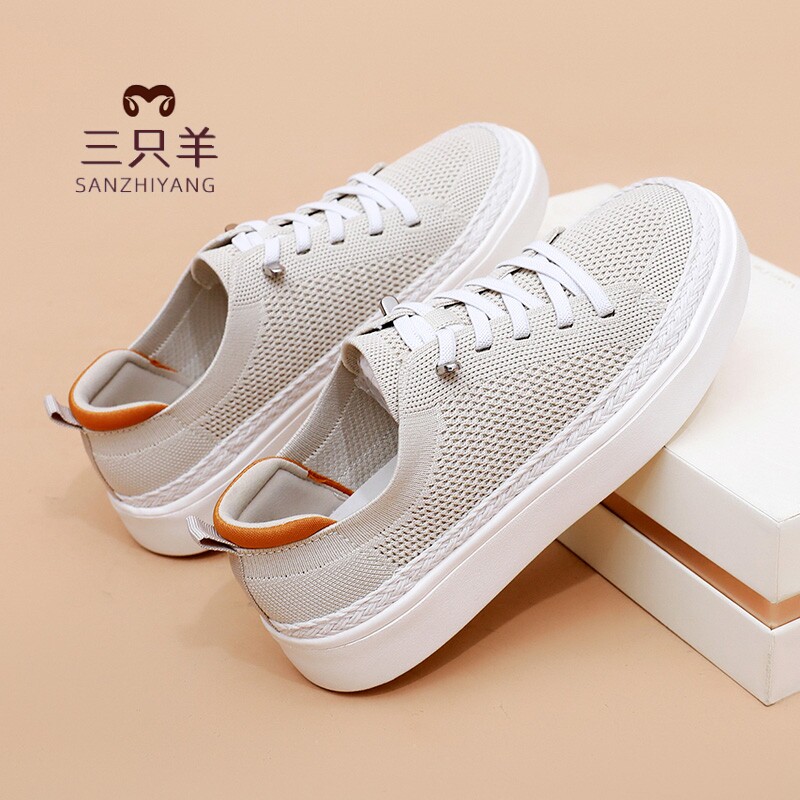 三只羊2026夏季网面透气休闲板鞋厚底百搭休闲一脚蹬软底小白鞋女