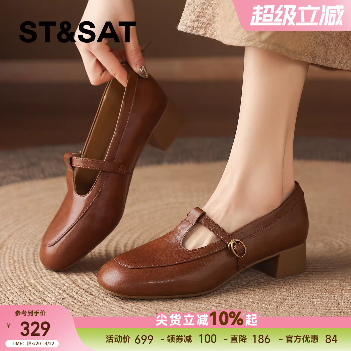 星期六爆款真皮浅口单鞋女鞋2026春季新款羊皮粗跟乐福鞋玛丽珍鞋
