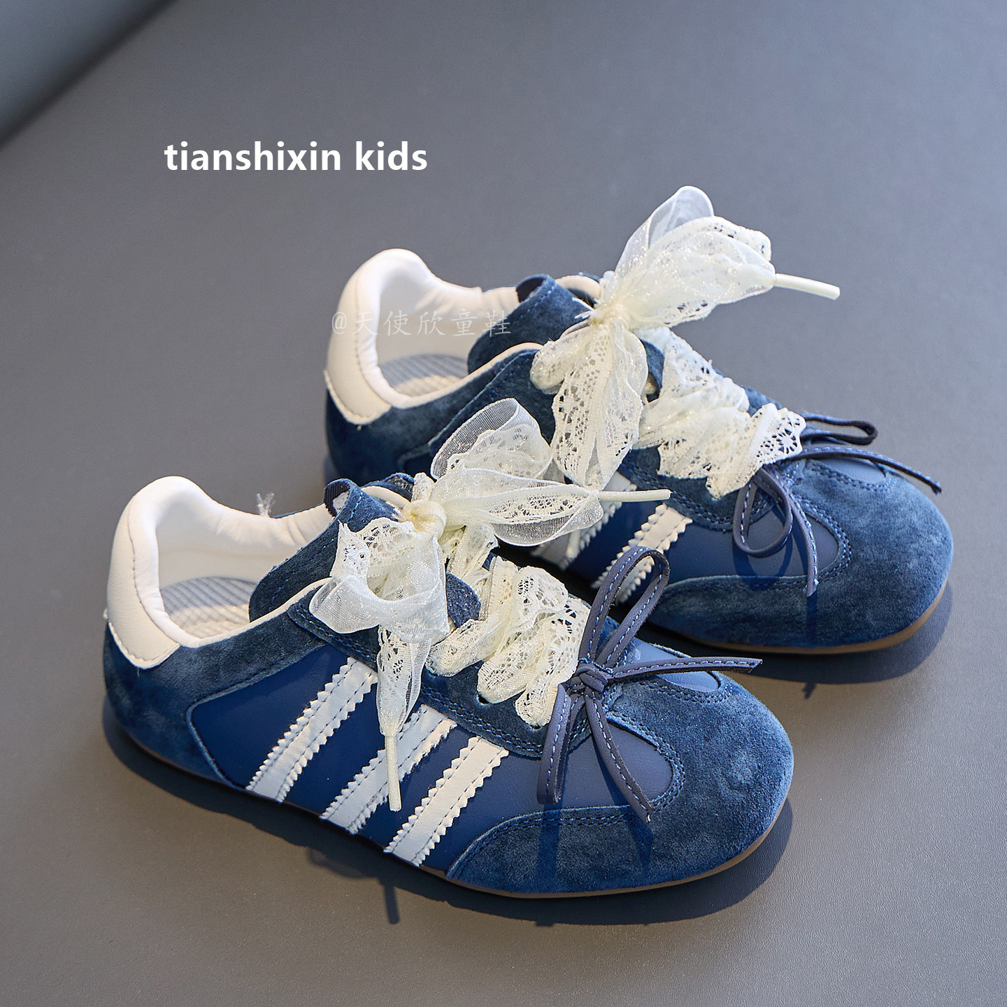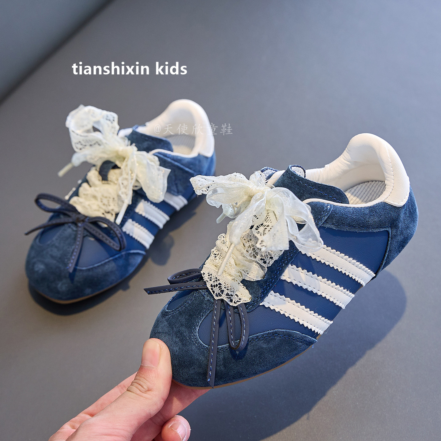 儿童德训单鞋真皮2025春秋新款女童运动鞋透气女孩公主鞋雷斯鞋带
