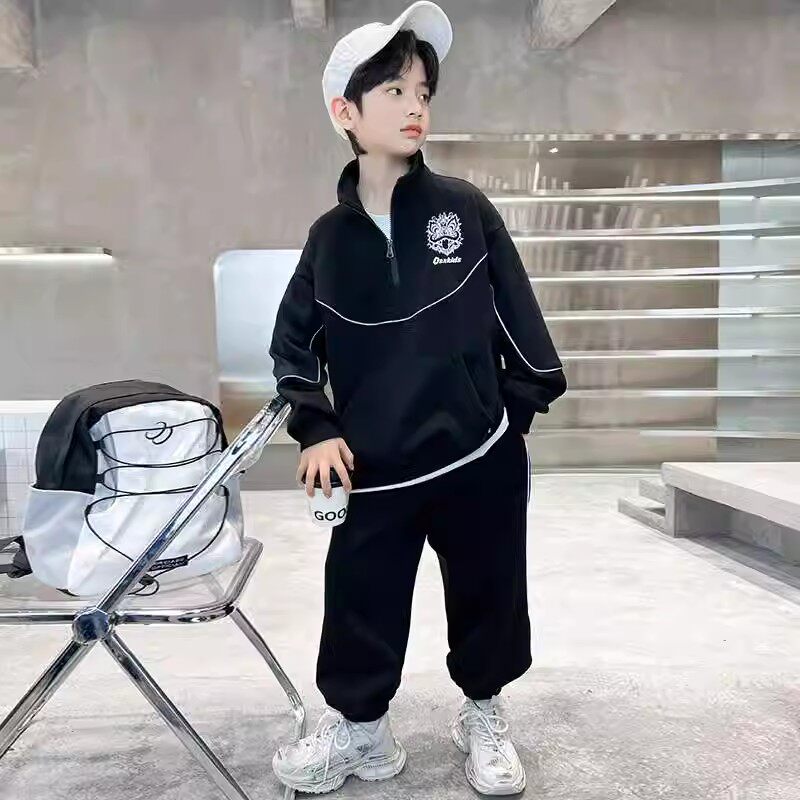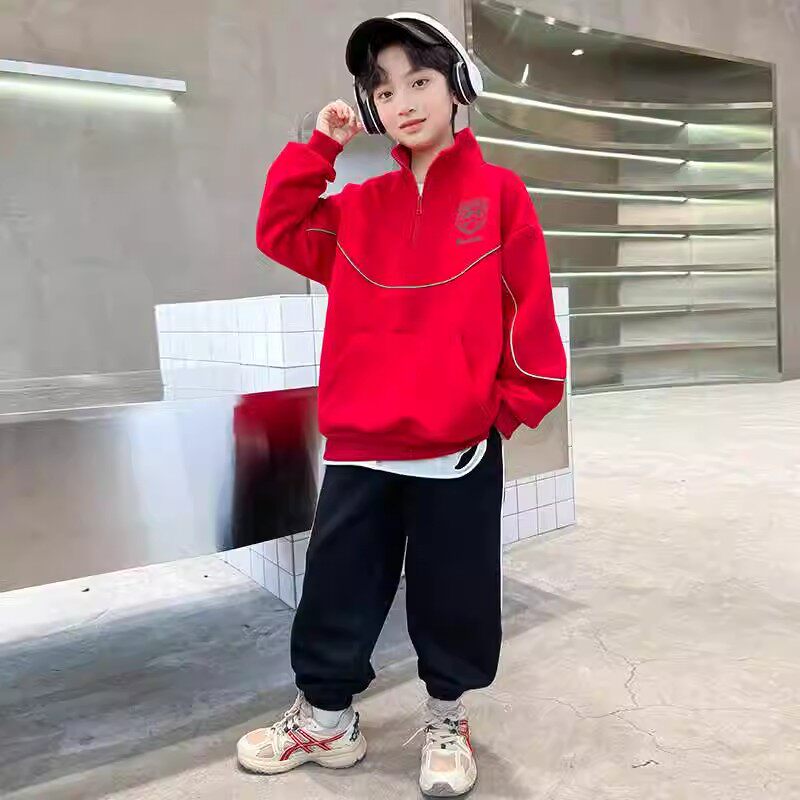 男童套装春秋款2024新款秋季中大儿童男孩春装红色卫衣帅气时髦潮