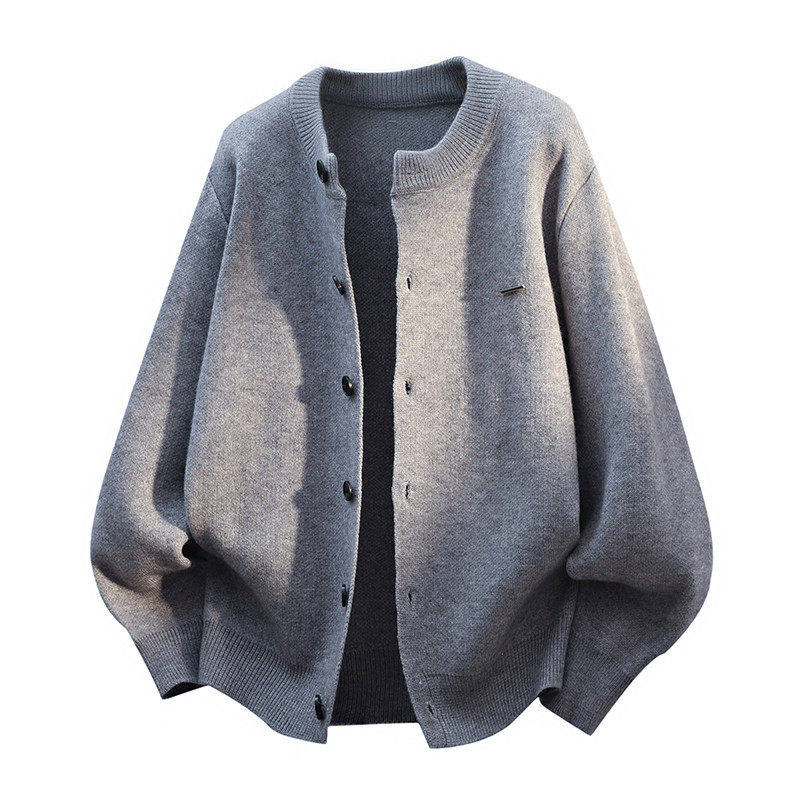 红色针织开衫外套男2025年秋冬纯色简约时尚圆领毛衣高级感上衣服