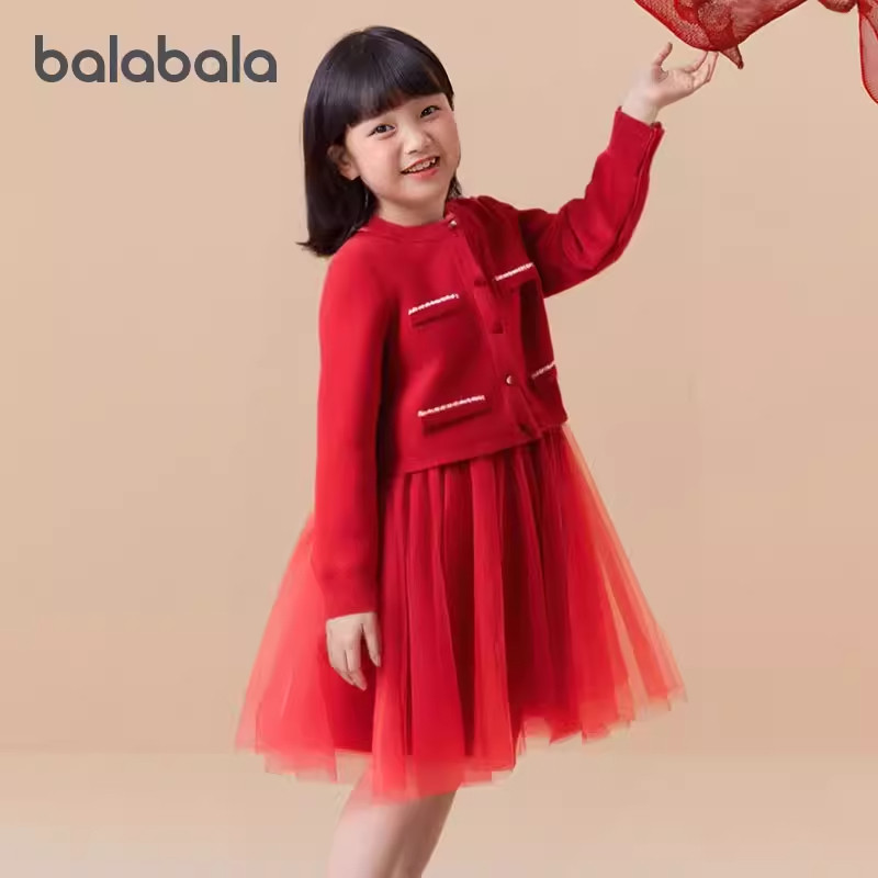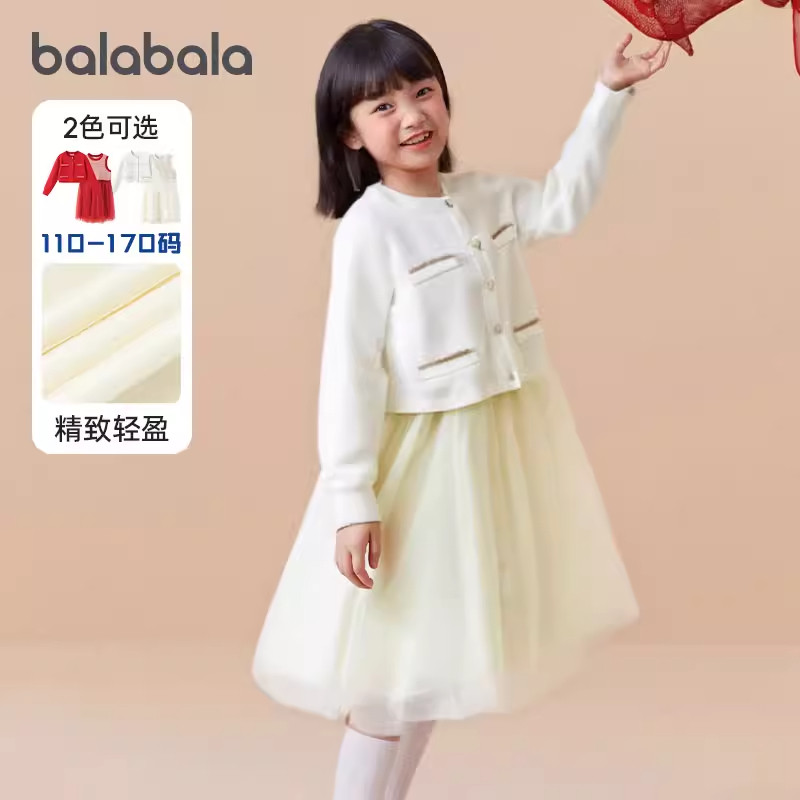 巴拉巴拉童装女连衣裙儿童裙子针织网纱2026春秋装新款两件套大童