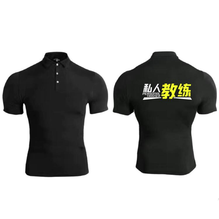 私人教练紧身衣工作服健身游泳短袖T恤弹力速干POLO衫定制印logo