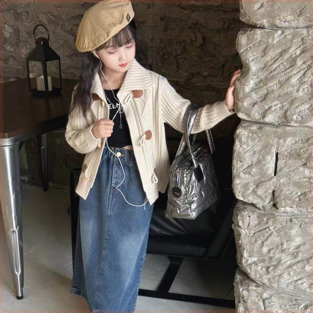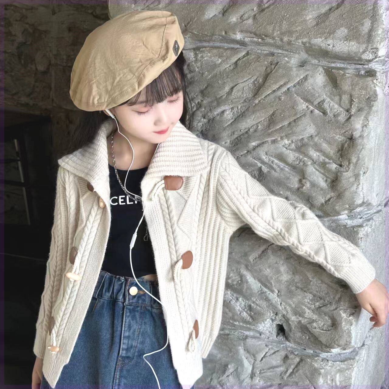 女童开衫毛衣中大童2024新款儿童洋气女孩春秋加厚毛线针织衫外套