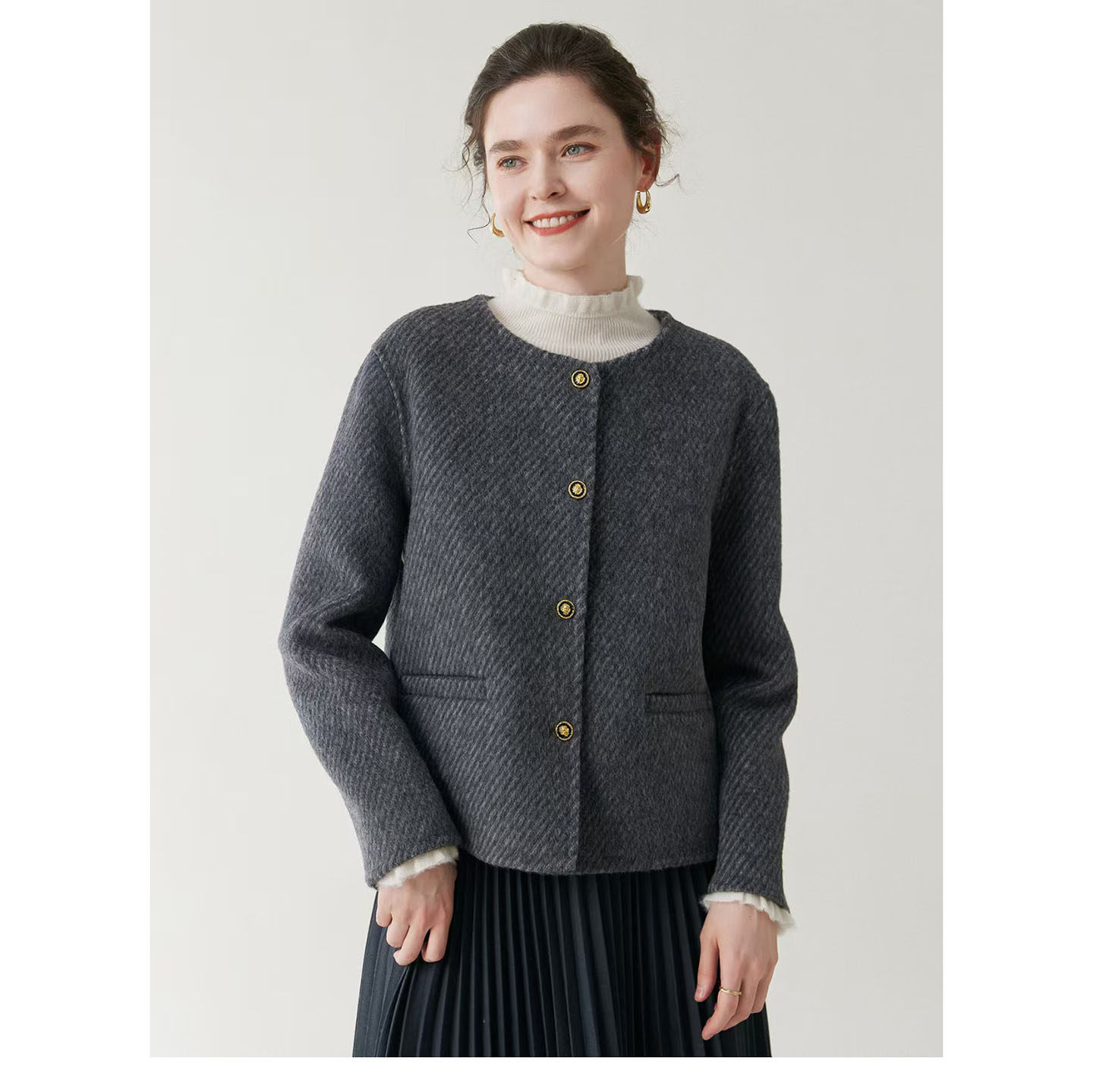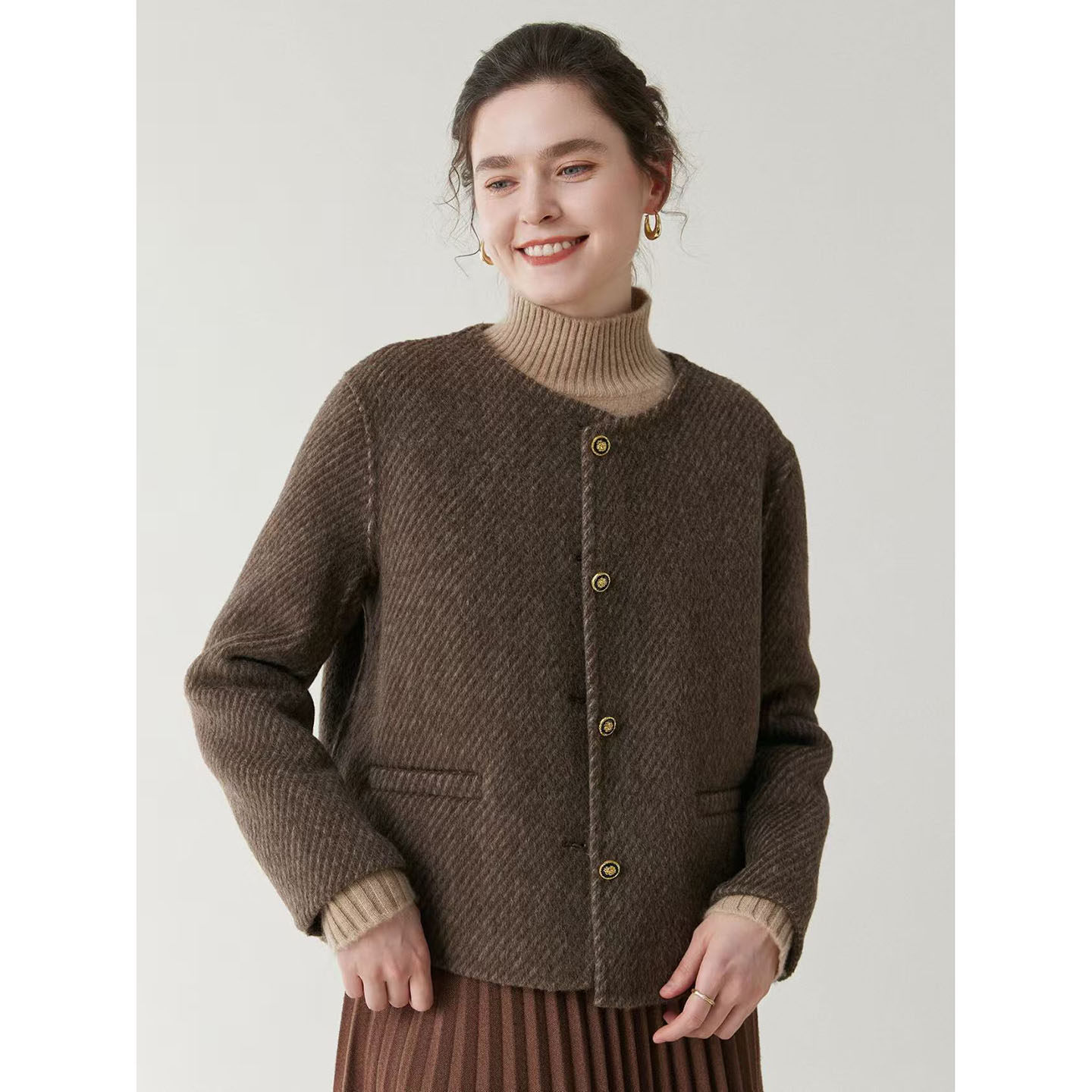 纯羊毛呢外套女中年妈妈显年轻小香风双面呢外套女装2026新款春款
