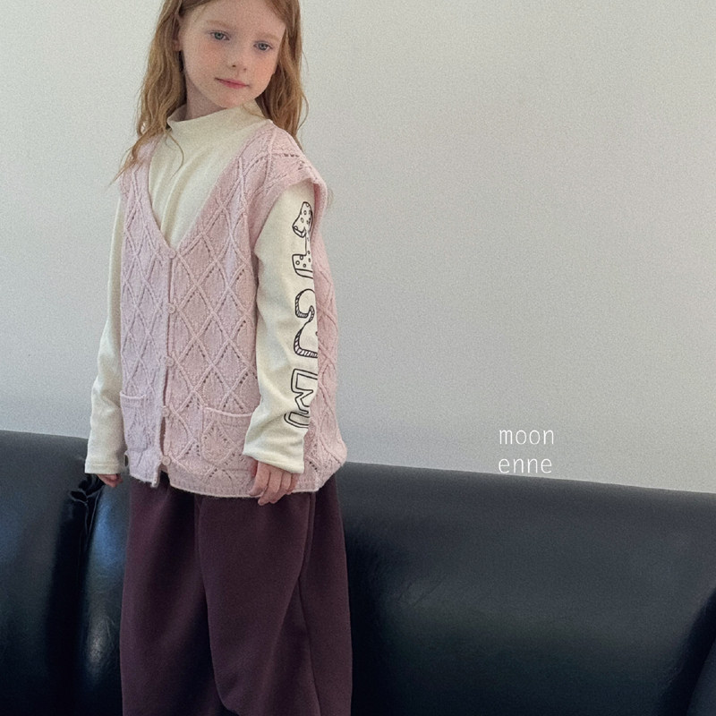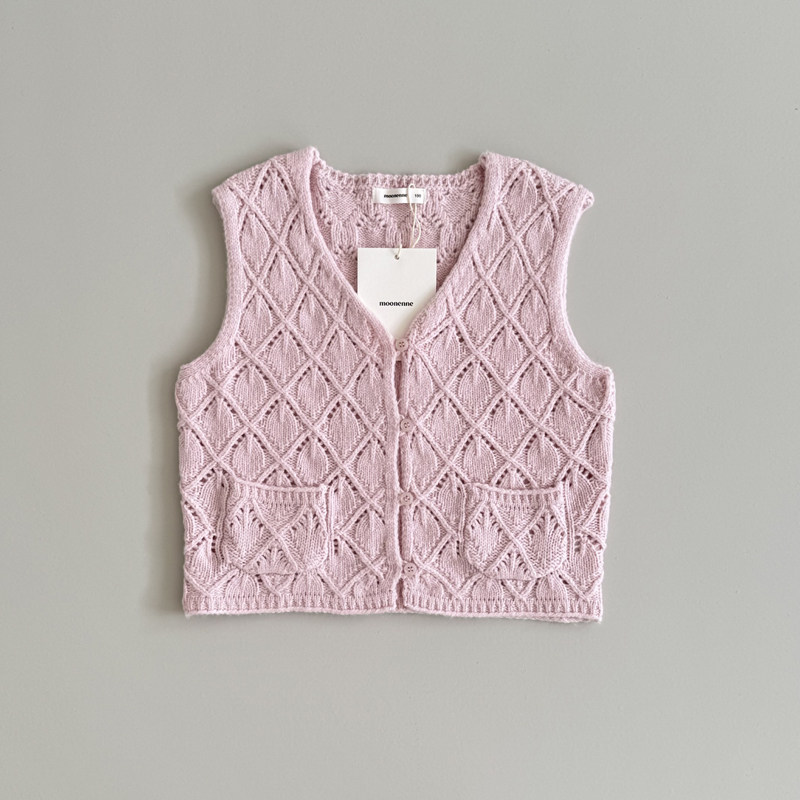 花样衣家女童中大童冬季新款镂空针织马甲浅粉色菱格开衫毛衣背心