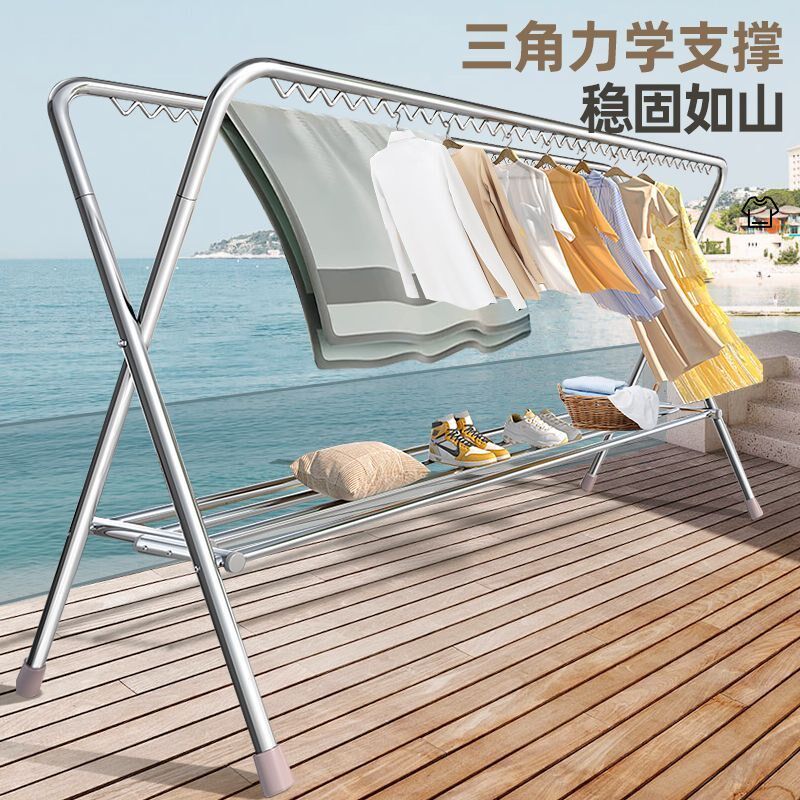 折叠晾衣架落地式加厚加粗挂衣架家用室外阳台防风X型伸缩晾衣杆