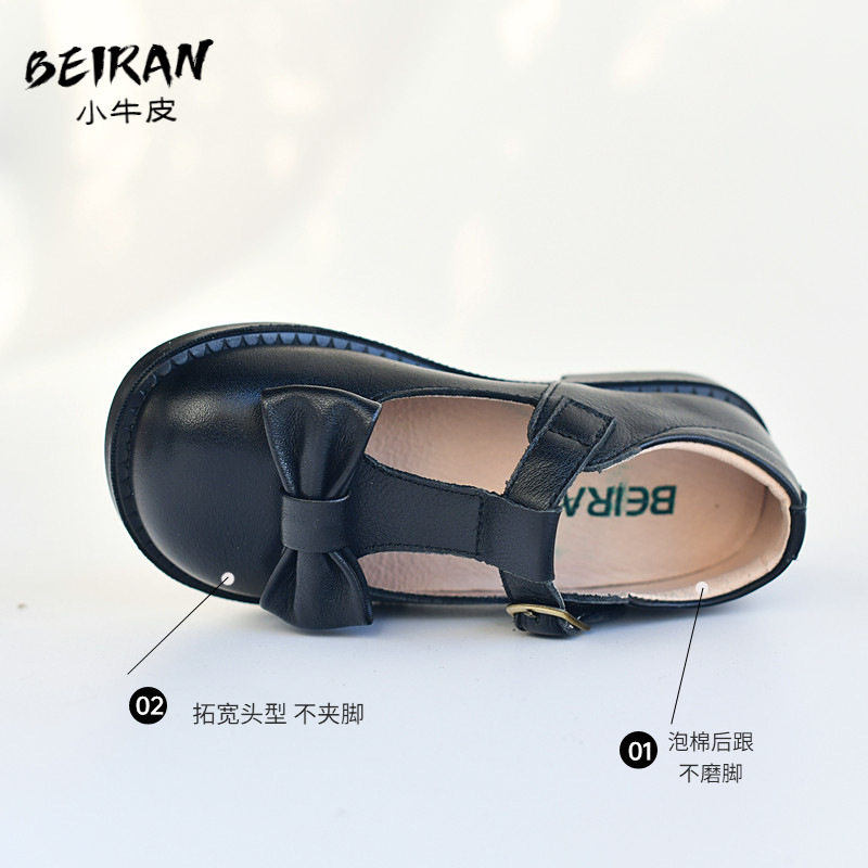 贝然儿童皮鞋女童校园鞋单鞋英伦蝴蝶结圆头软底宝宝真皮透气黑色
