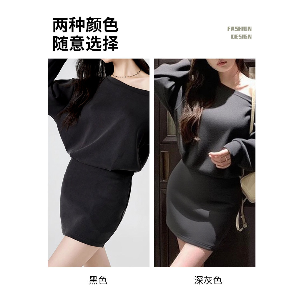311线报网描述:一字肩漂亮冷淡系拼接露肩2025新款早春秋季
