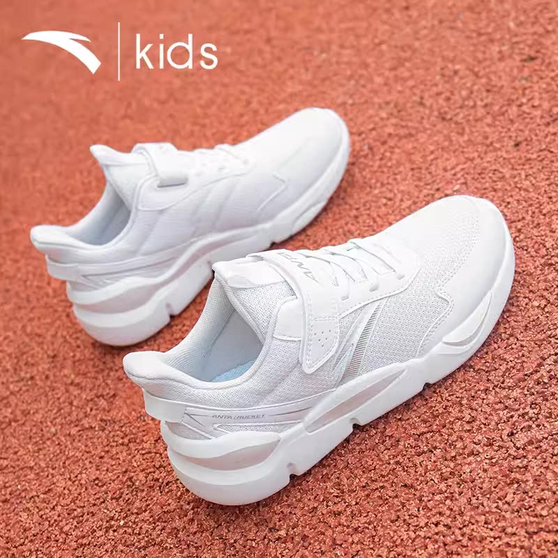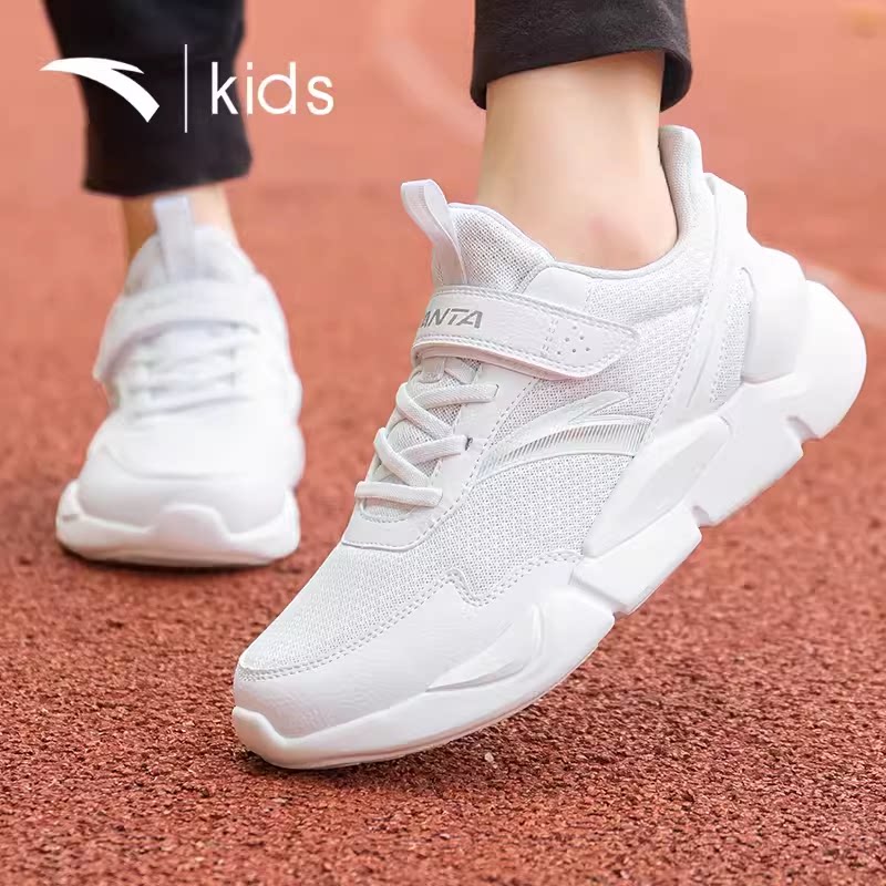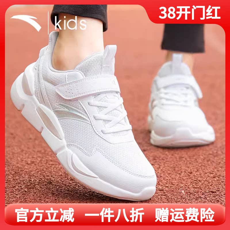 安踏儿童小白鞋男童白色运动鞋春季网面透气童鞋中大童学生跑步鞋