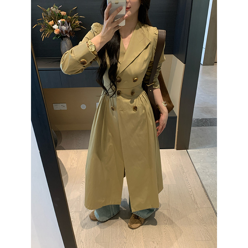 XINYI【松茶情书】秋季棉感斜纹风衣连衣裙长袖收腰显瘦气质裙