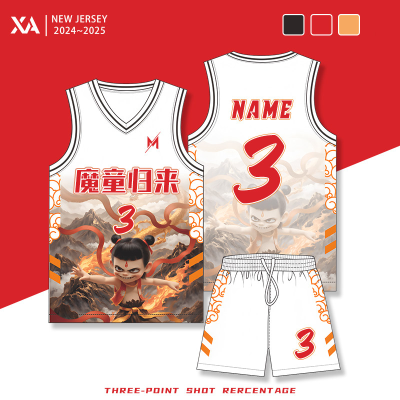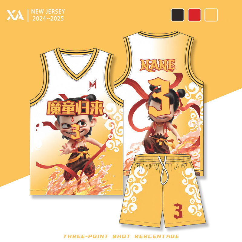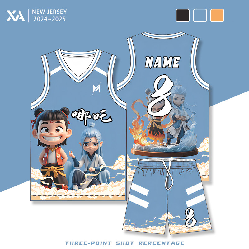 儿童篮球服套装男童哪吒动漫数码印篮球训练比赛队服全身印篮球衣