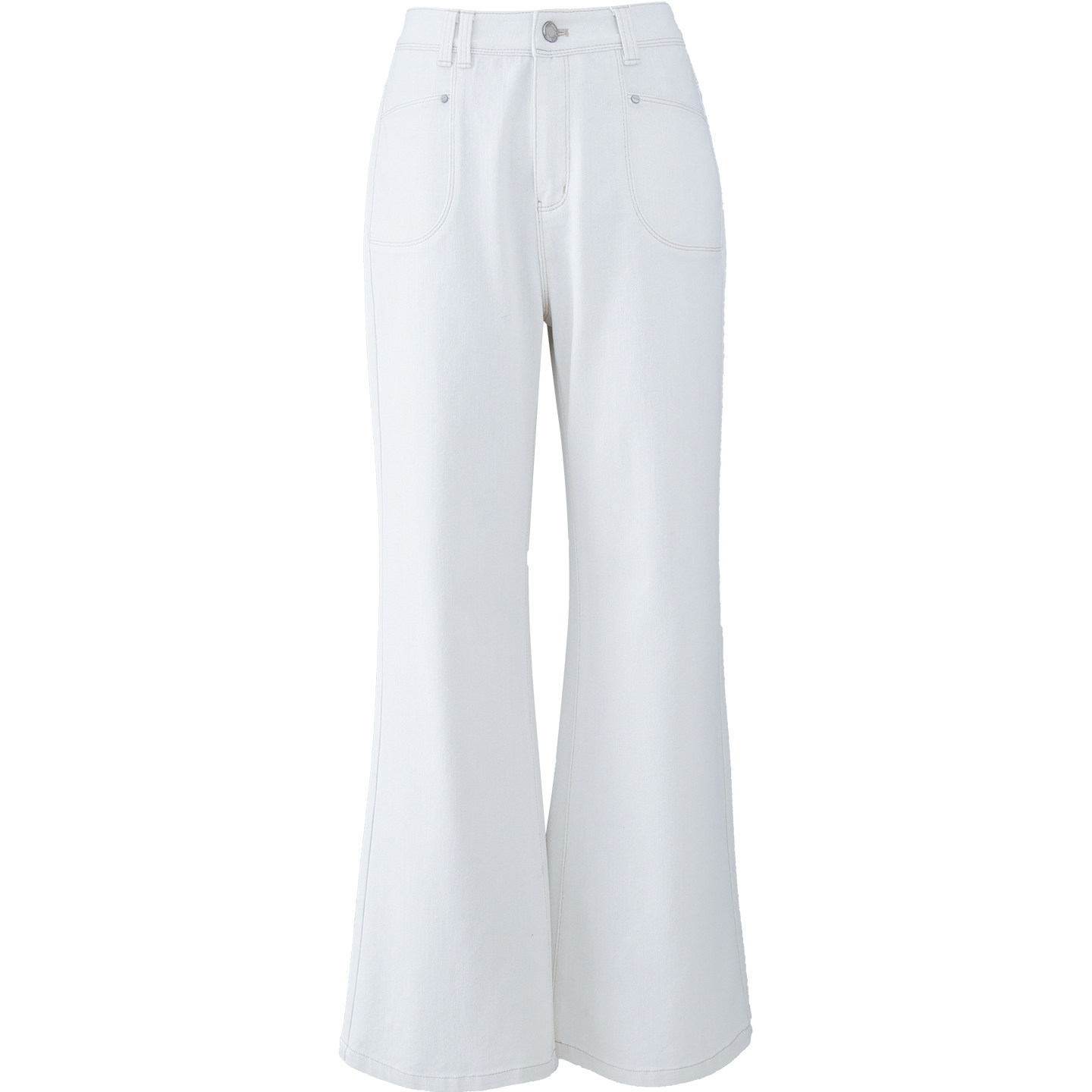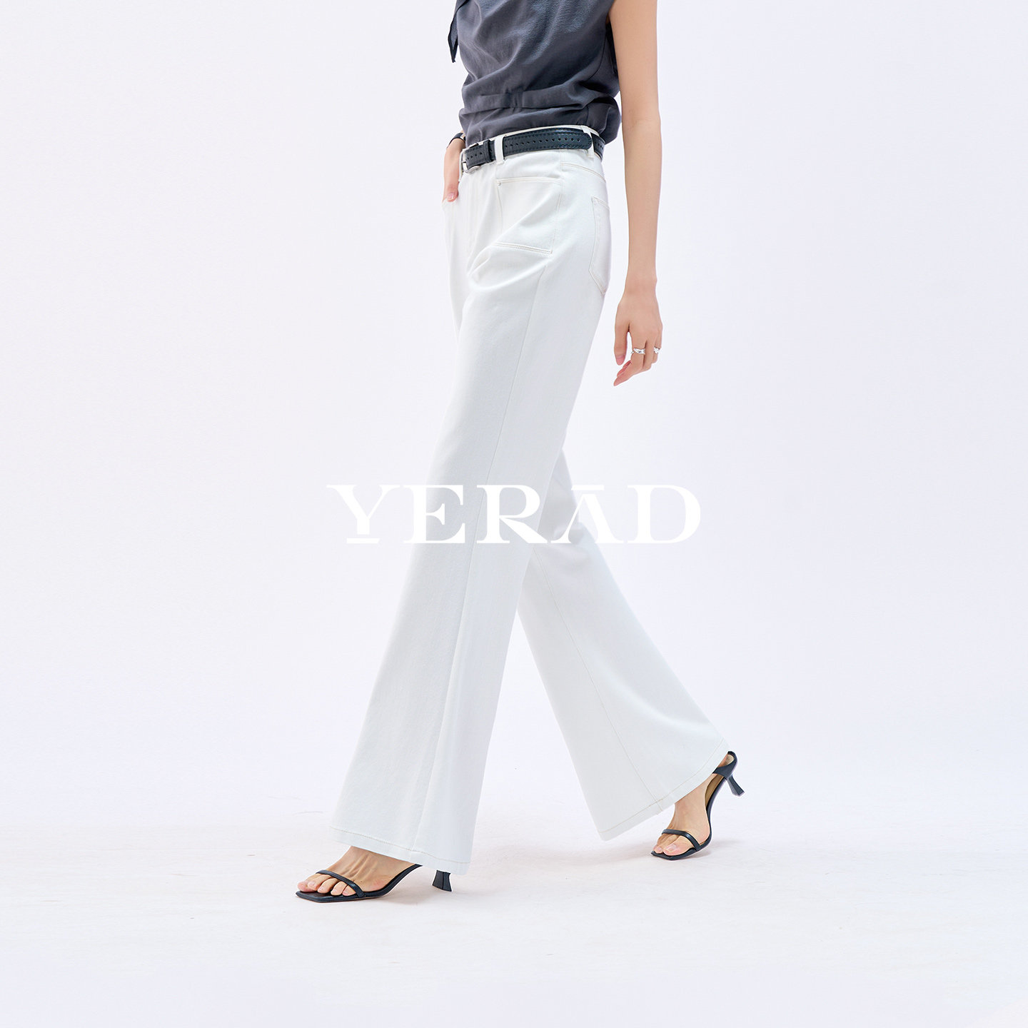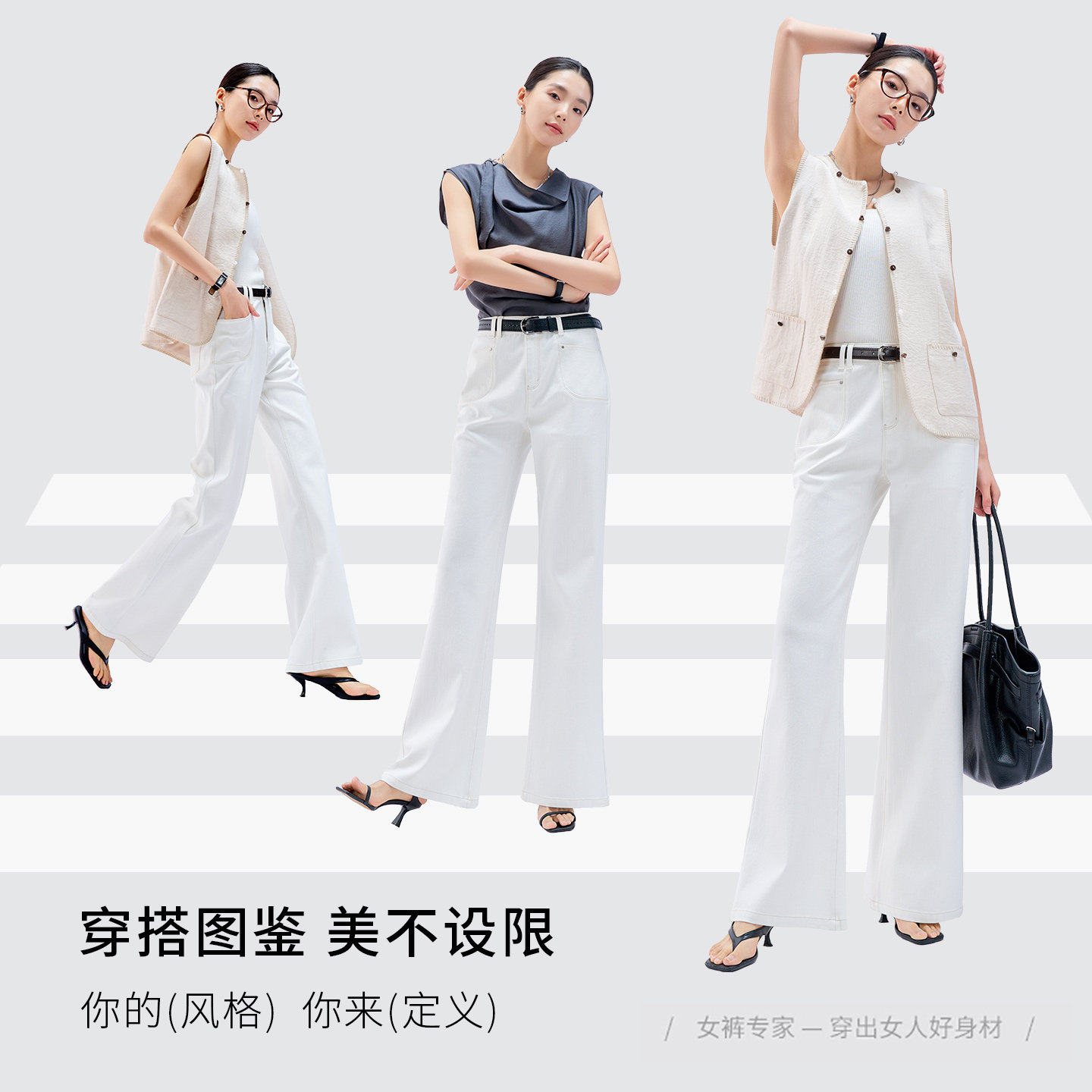 娅丽达拖地筒喇裤女2026年夏新款白色弹力复古梨形直筒微喇牛仔裤