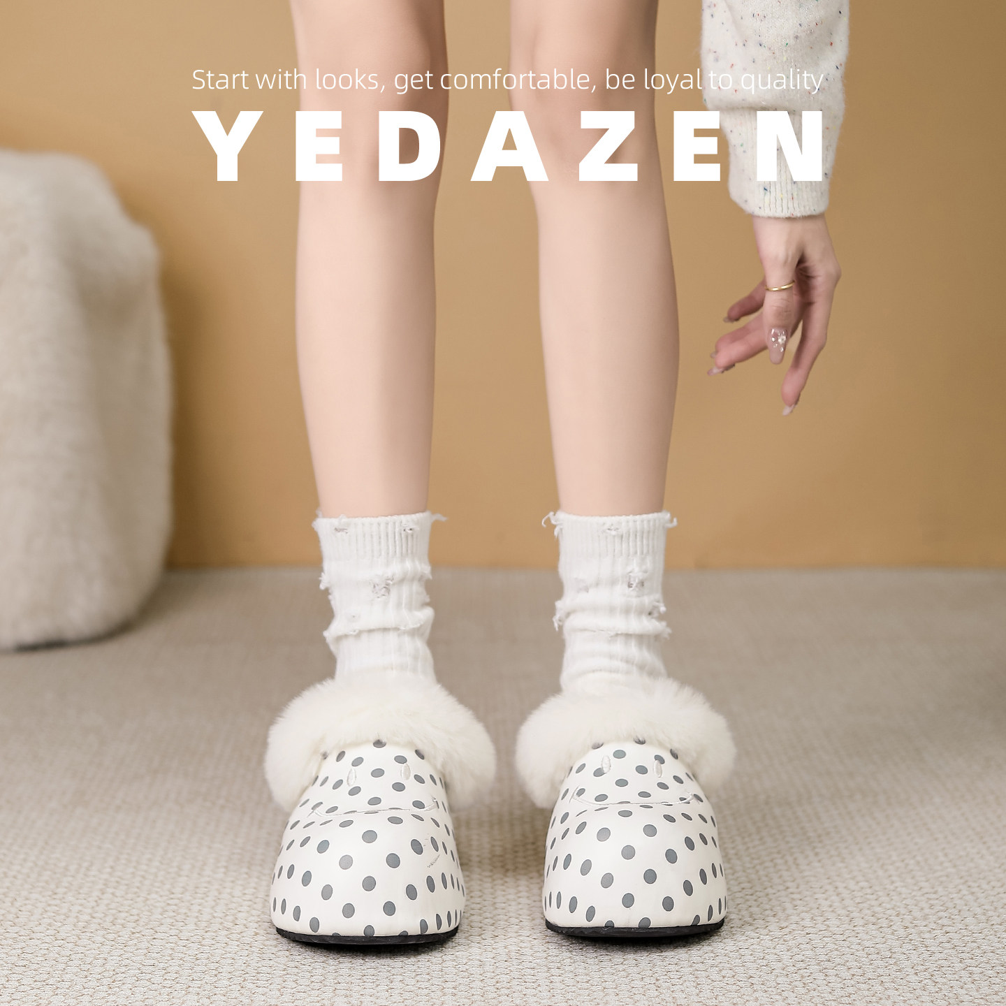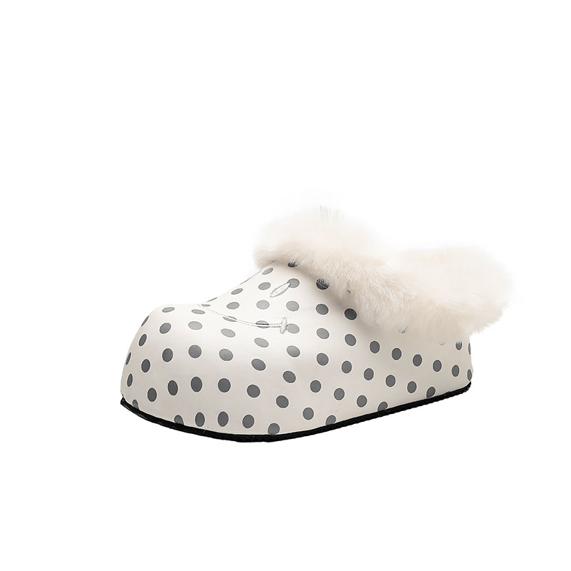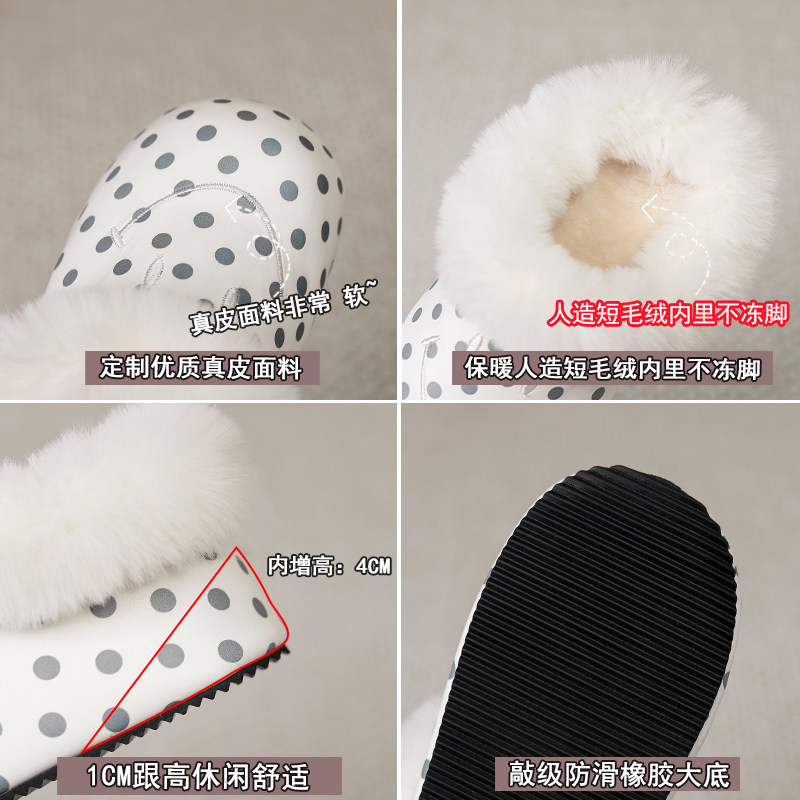 巨好看波点雪地靴低帮女冬季加绒厚底一脚蹬白色内增高笑脸毛毛鞋