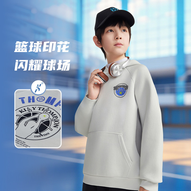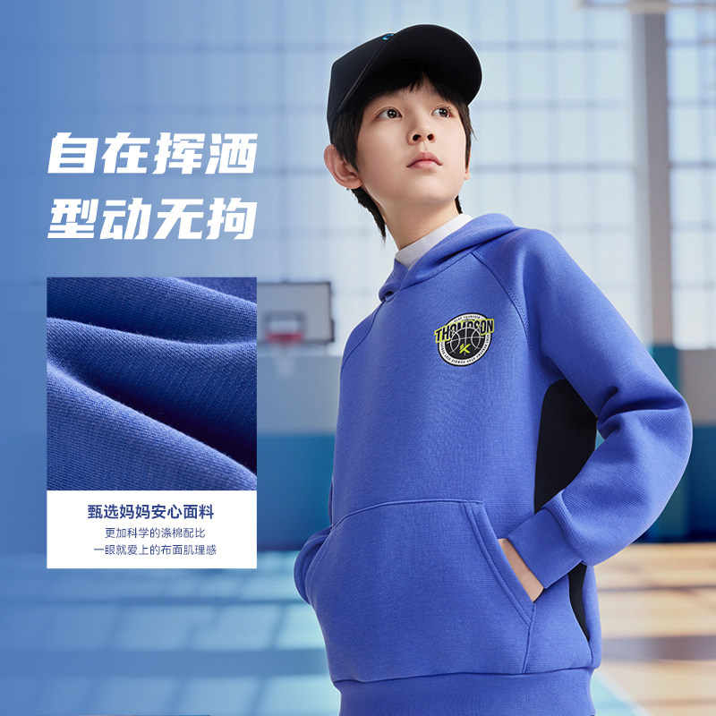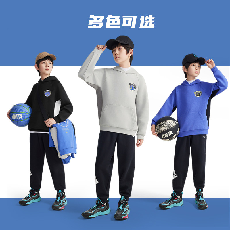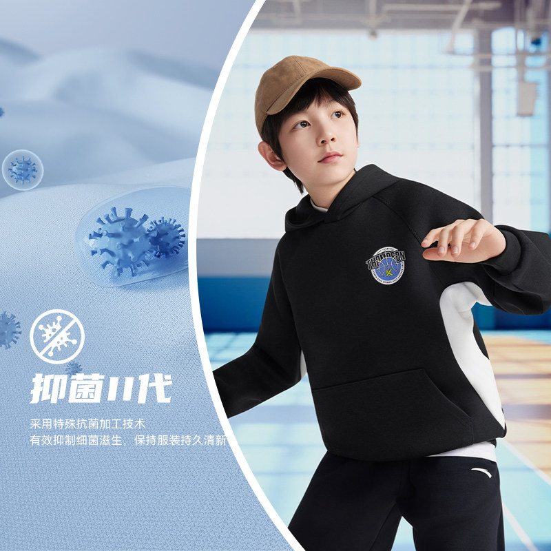 官方正品安踏儿童男大童连帽卫衣篮球套头衫2025秋冬款中大