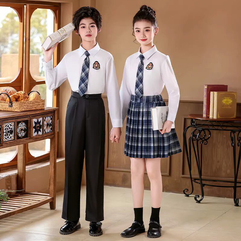 儿童学院风合唱演出服男女童爱国朗诵演讲比赛服装格纹百褶裙班服