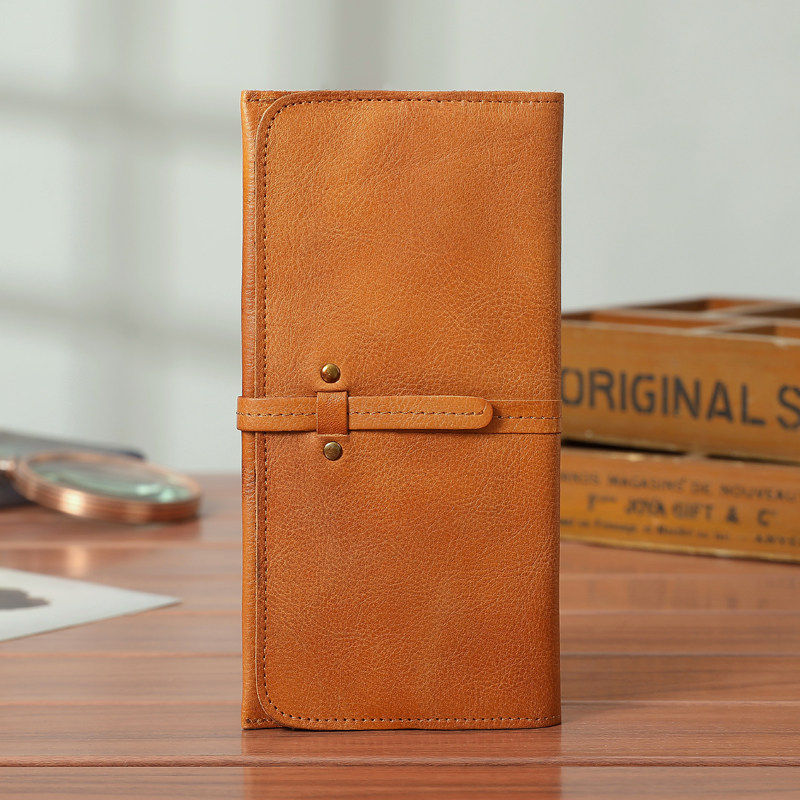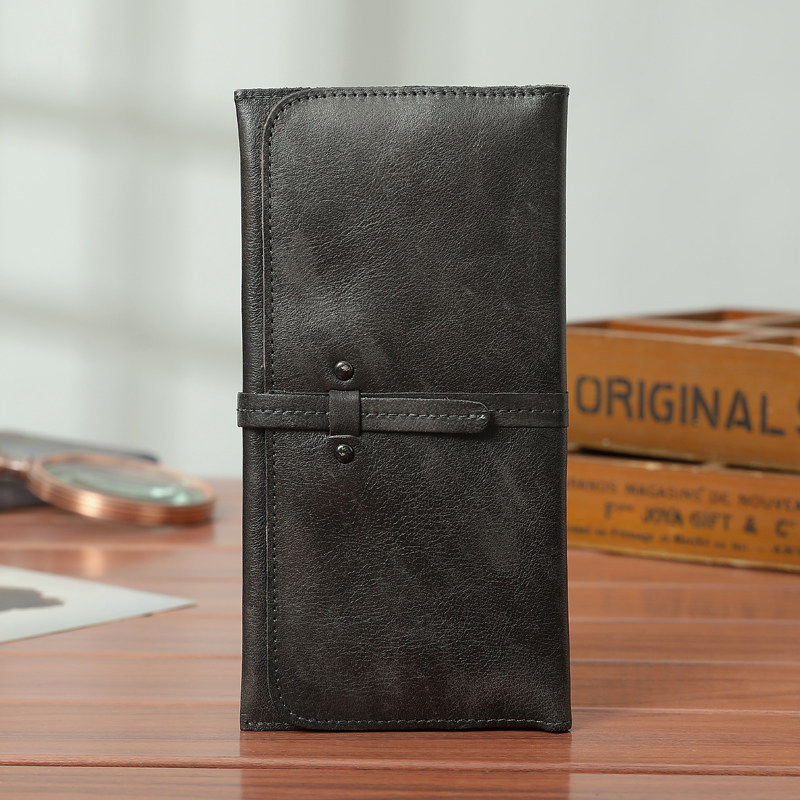 爱马男士钱包男真皮长款青年头层真牛皮钱夹女士休闲手工擦色做旧