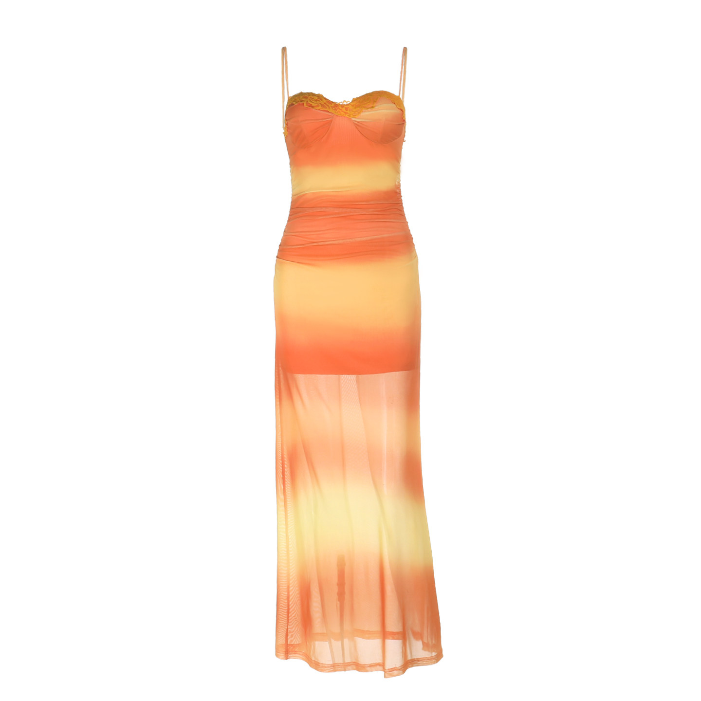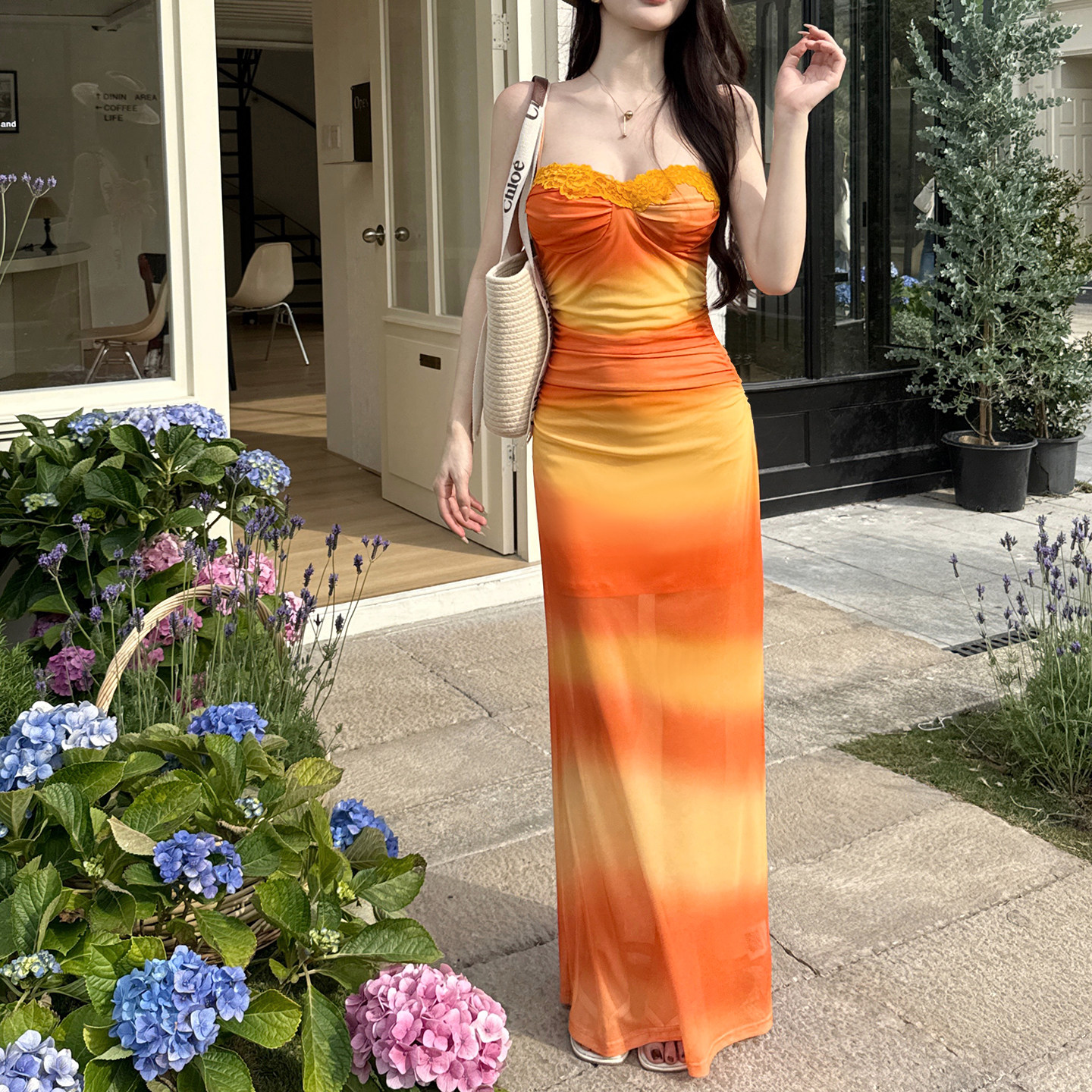 小可wiwi法式落日橘渐变吊带连衣裙女夏海边度假修身显瘦包臀长裙