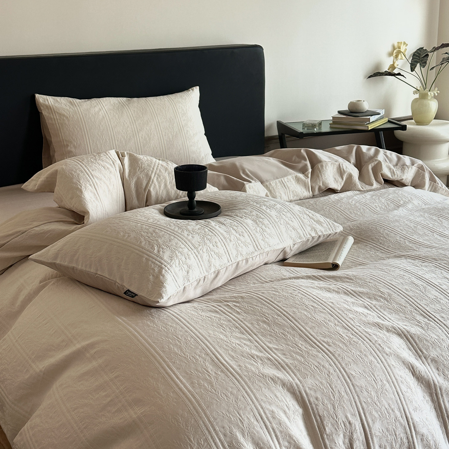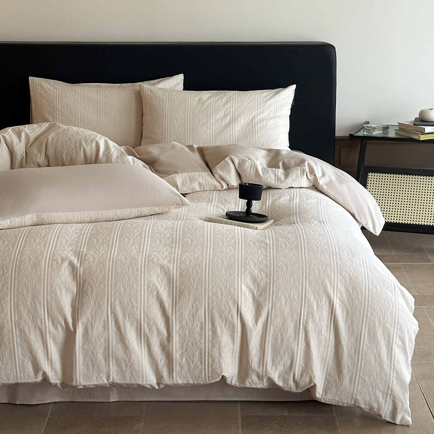 春夏季全棉厚织大提花床上四件套复古轻奢感被套床单纯棉床笠床品