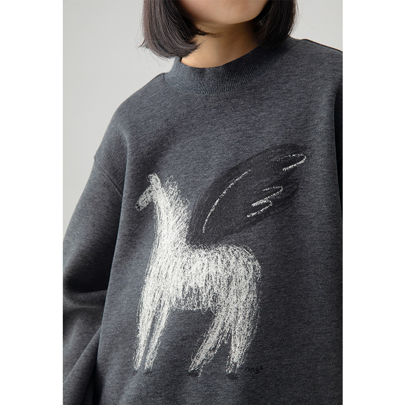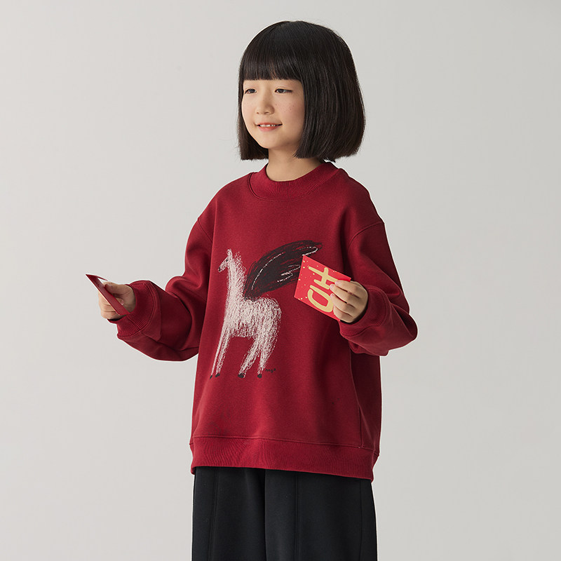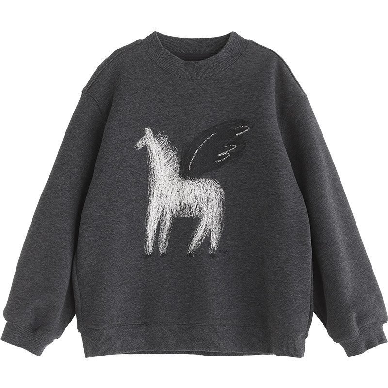 NNGZ冬季女童马年印花加绒卫衣亲肤保暖儿童套头衫童装百搭上衣