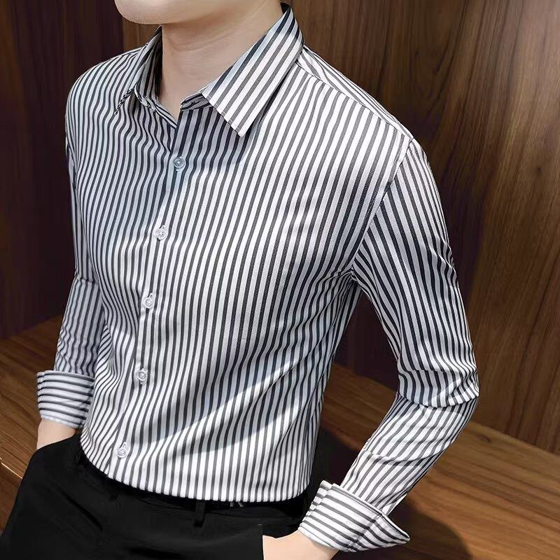 条纹衬衫男士长袖春秋款2024新款高级感男装上衣商务春装男款衬衣
