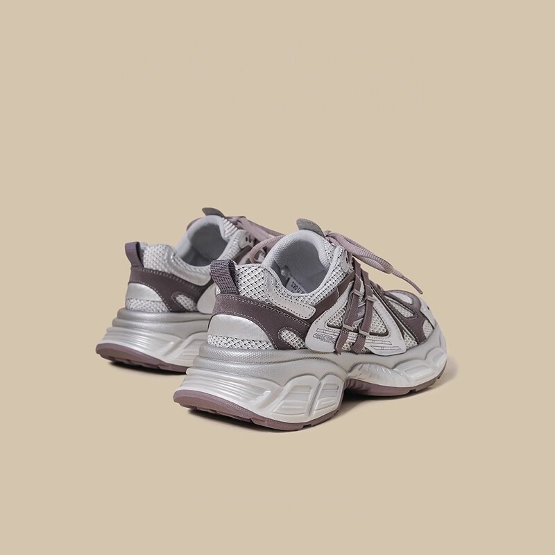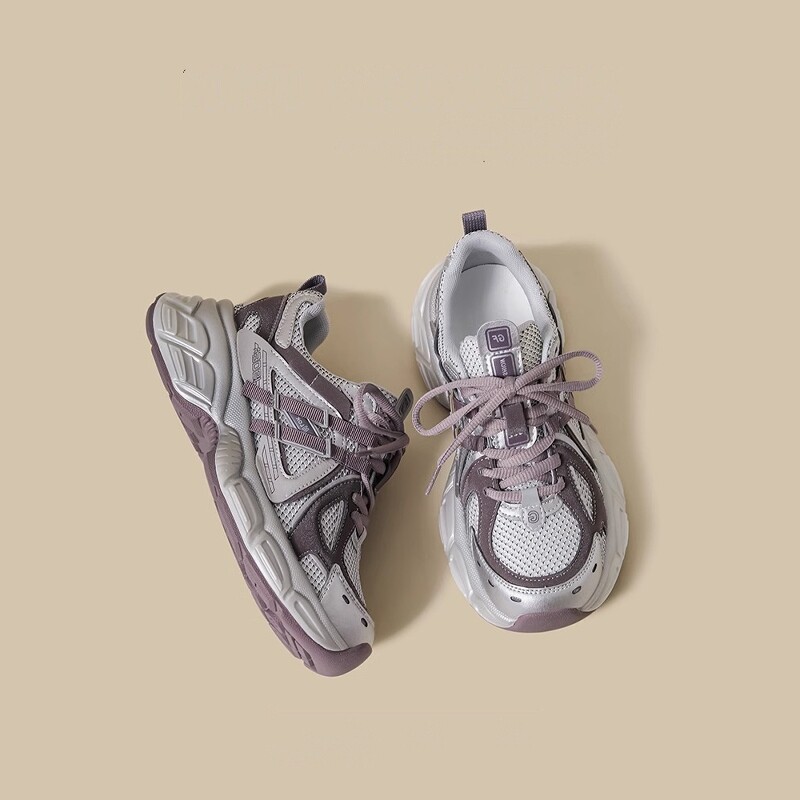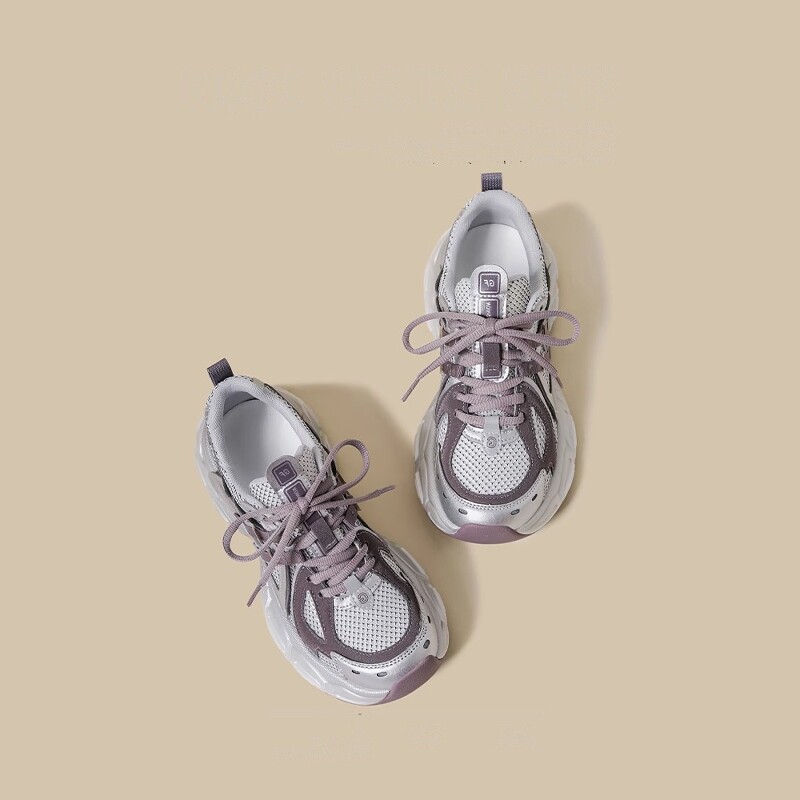 紫色复古老爹鞋女2026夏季新款厚底重工小个子增高透气休闲运动鞋