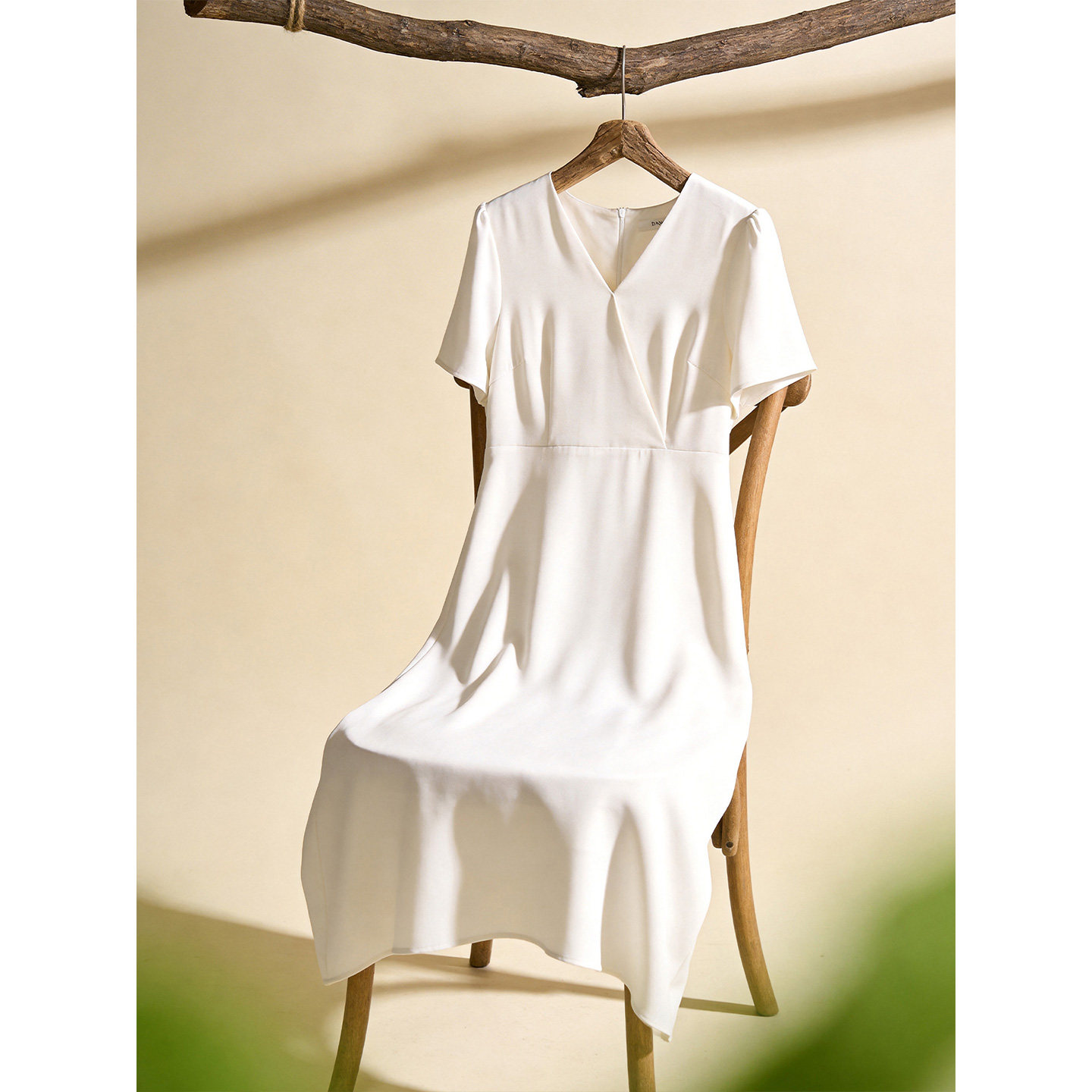 白色短袖V领连衣裙女2026年夏季新款收腰泡泡袖法式气质长款裙子