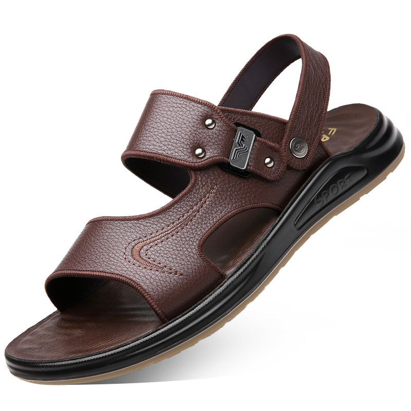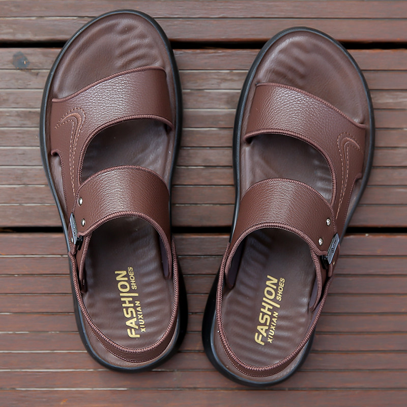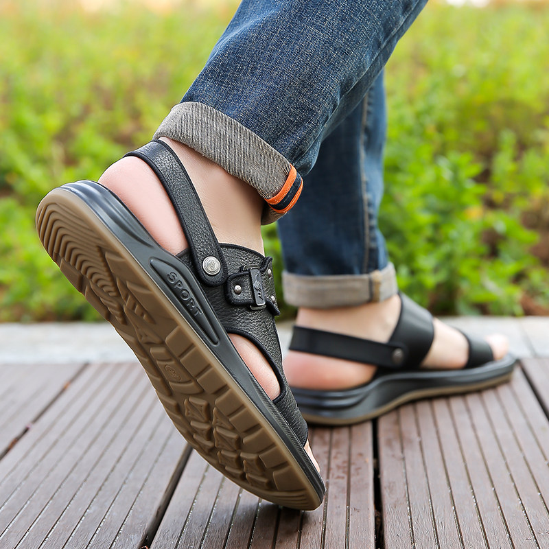 100%全牛皮欧伦啄木鸟凉鞋男真皮休闲沙滩鞋男士牛筋底两用凉拖鞋