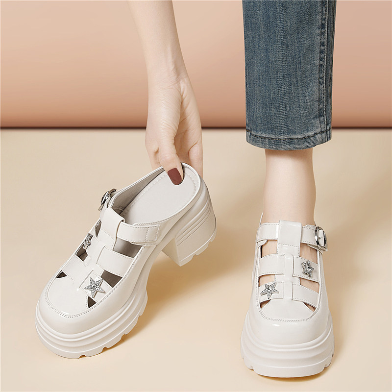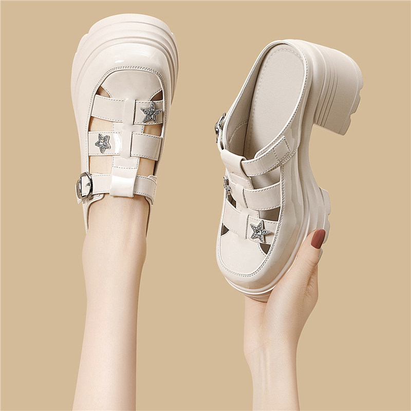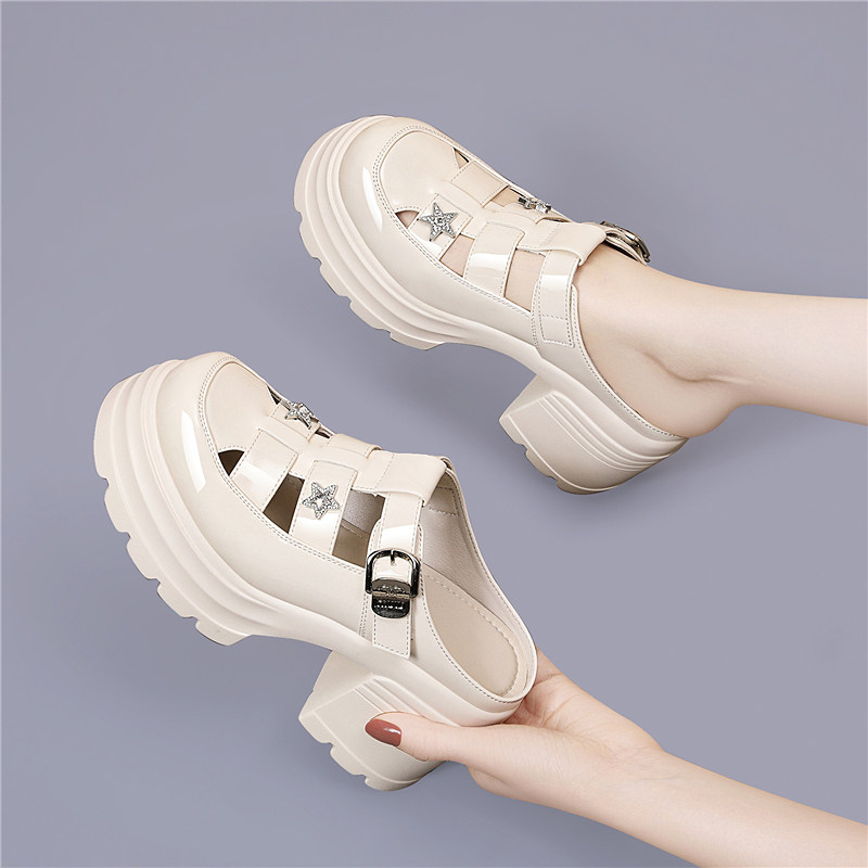 厚底罗马凉鞋女鞋2026新款春夏季猪笼鞋包头黑色编织不累脚凉拖鞋