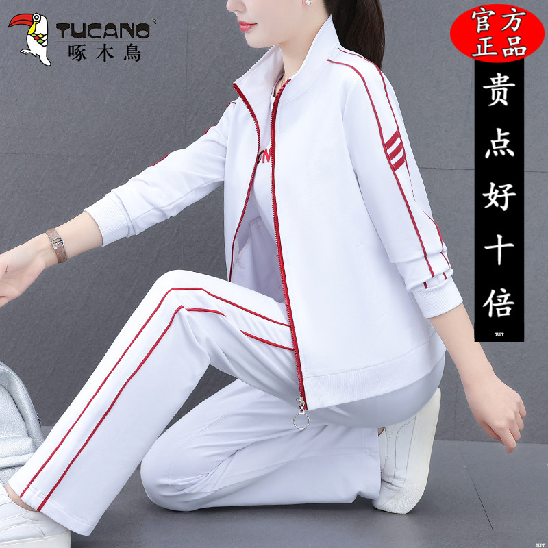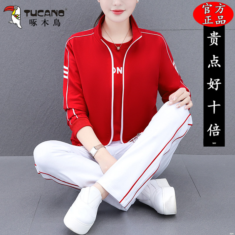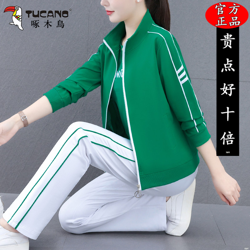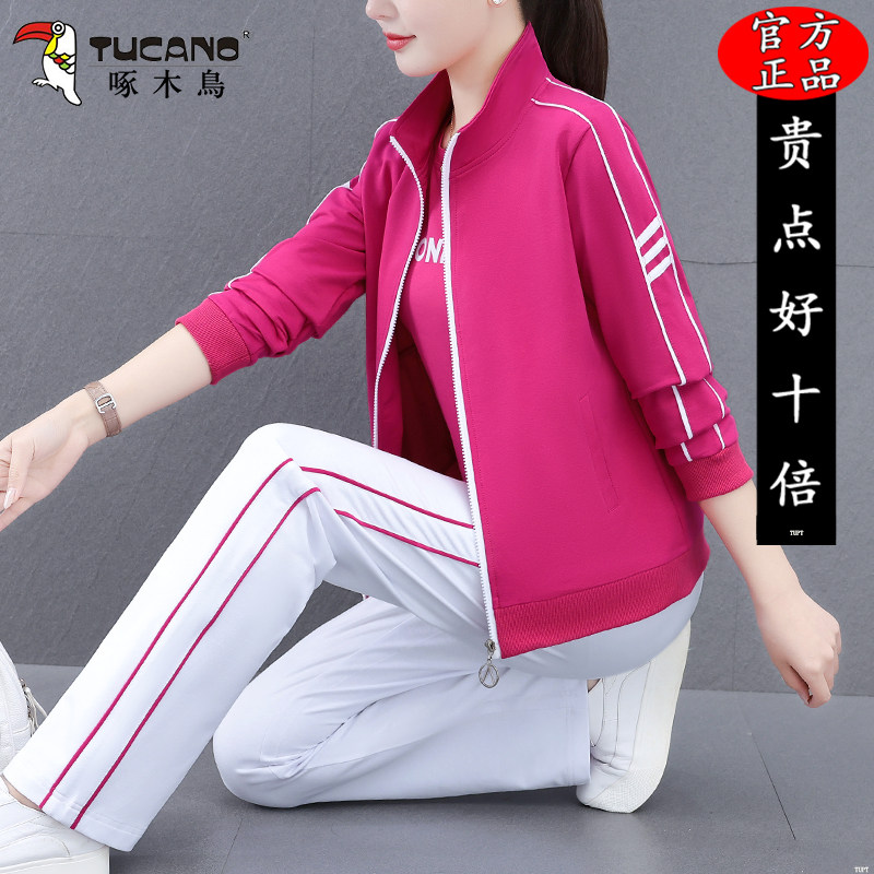 啄木鸟时尚运动套装女士2026春秋季新款妈妈跳舞团体服立领三件套