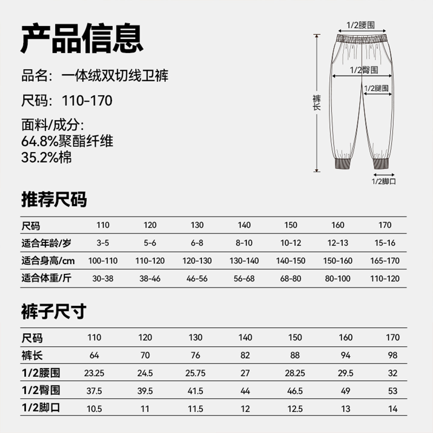 贵人鸟童装男童加绒运动裤青少年冬季百搭保暖裤儿童加厚灰色裤子