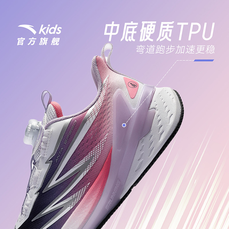 安踏儿童弓速女童跑鞋2026春夏新款专业跑步学生跑训旋钮童鞋