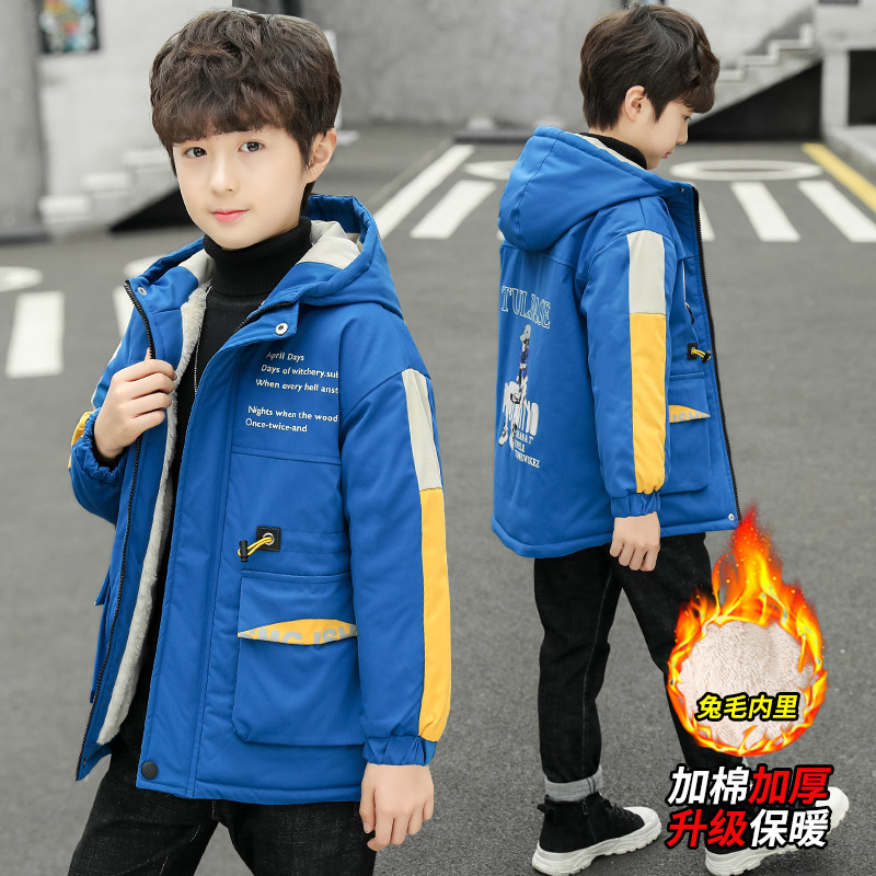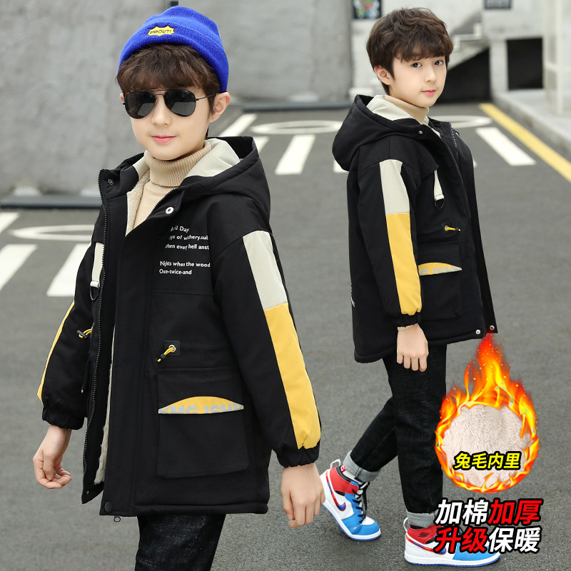 男童加绒风衣2026新款秋冬装连帽中大童男孩洋气冬装外套12岁潮牌