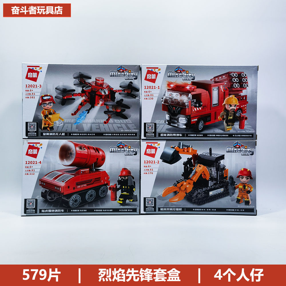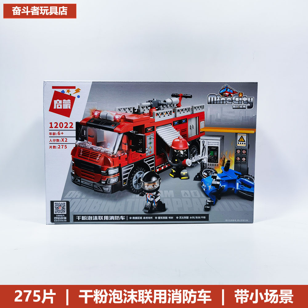启蒙积木消防系列多功能应急救援指挥车消防局模型男孩益智12025