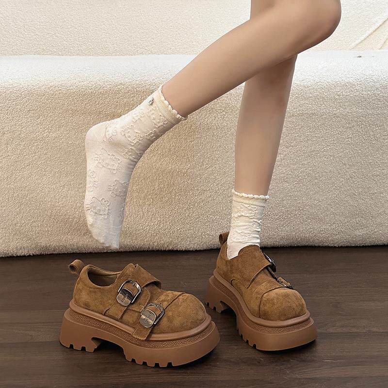 百搭松糕底厚底勃肯鞋女2026新款冬黑色双扣带增高百搭小个子单鞋