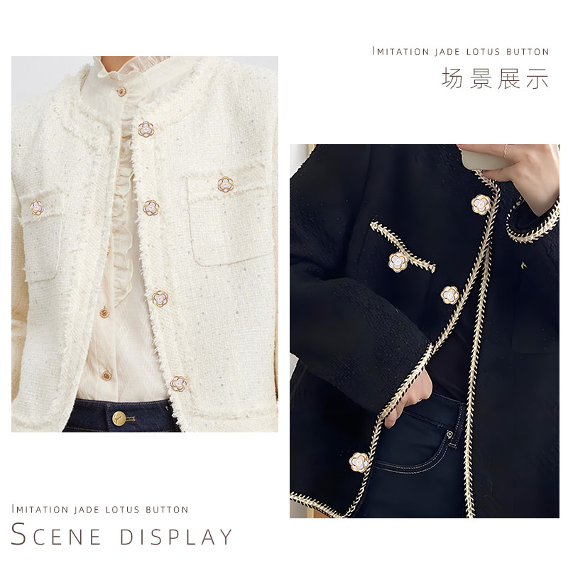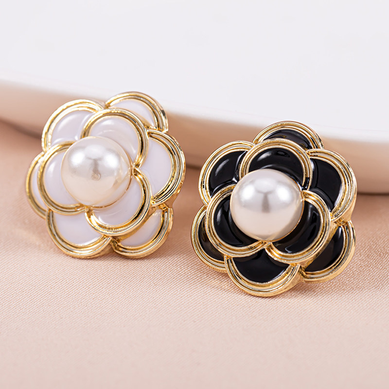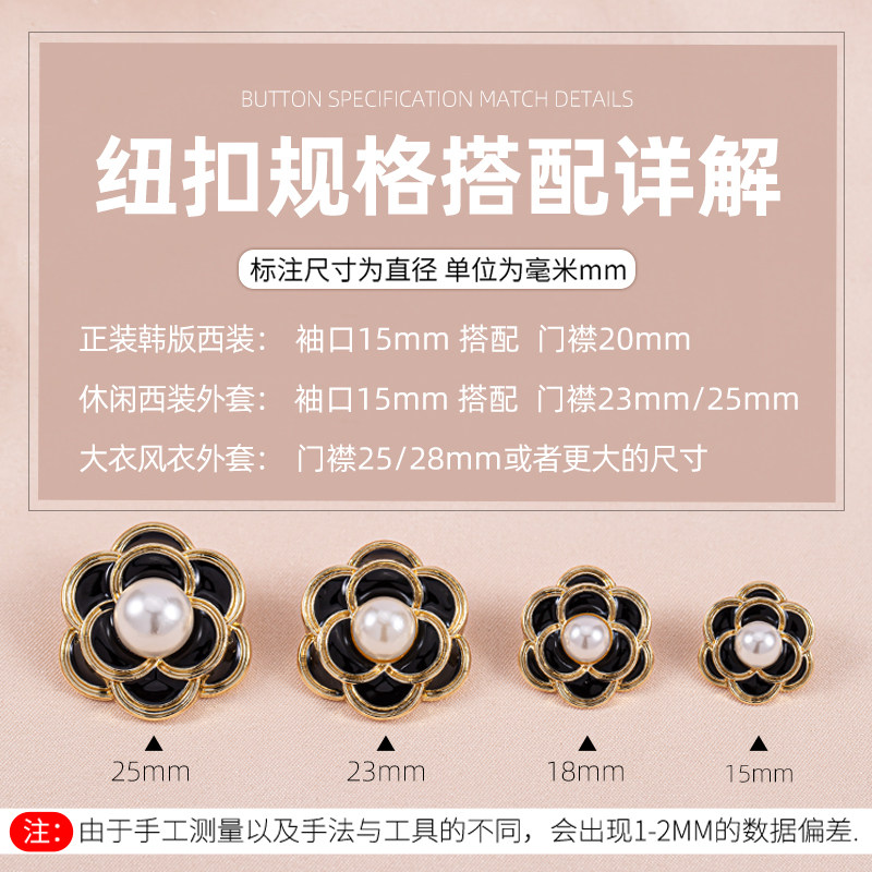高档小香风山茶花珍珠纽扣高端精致时尚毛衣开衫金属大衣羊绒纽扣