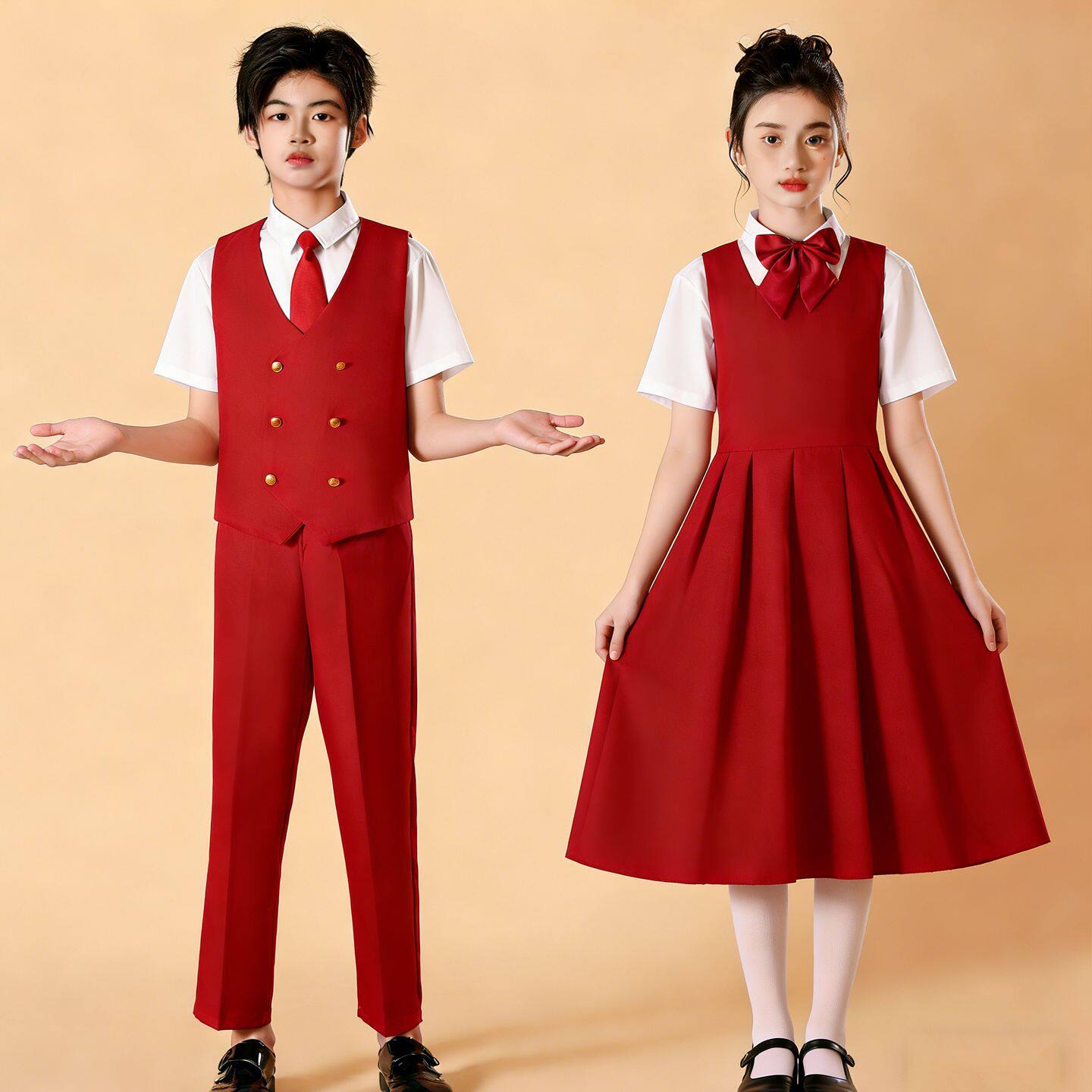 儿童合唱团爱国朗诵比赛演出服女童初中小学生学院风演讲服装礼服