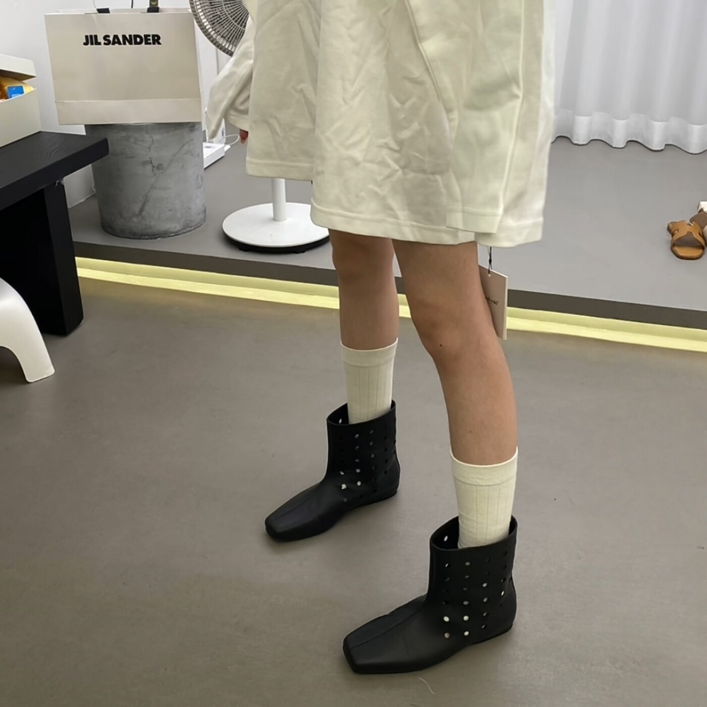 羊皮版~真皮镂空宽筒短靴女2025夏天新款透气短筒凉靴子罗马凉鞋