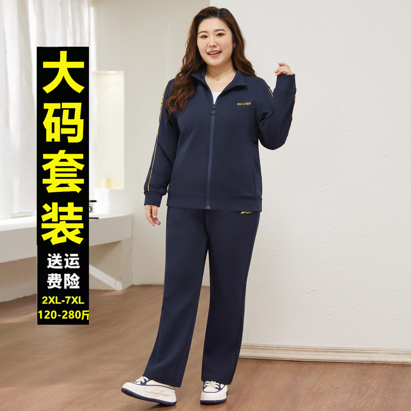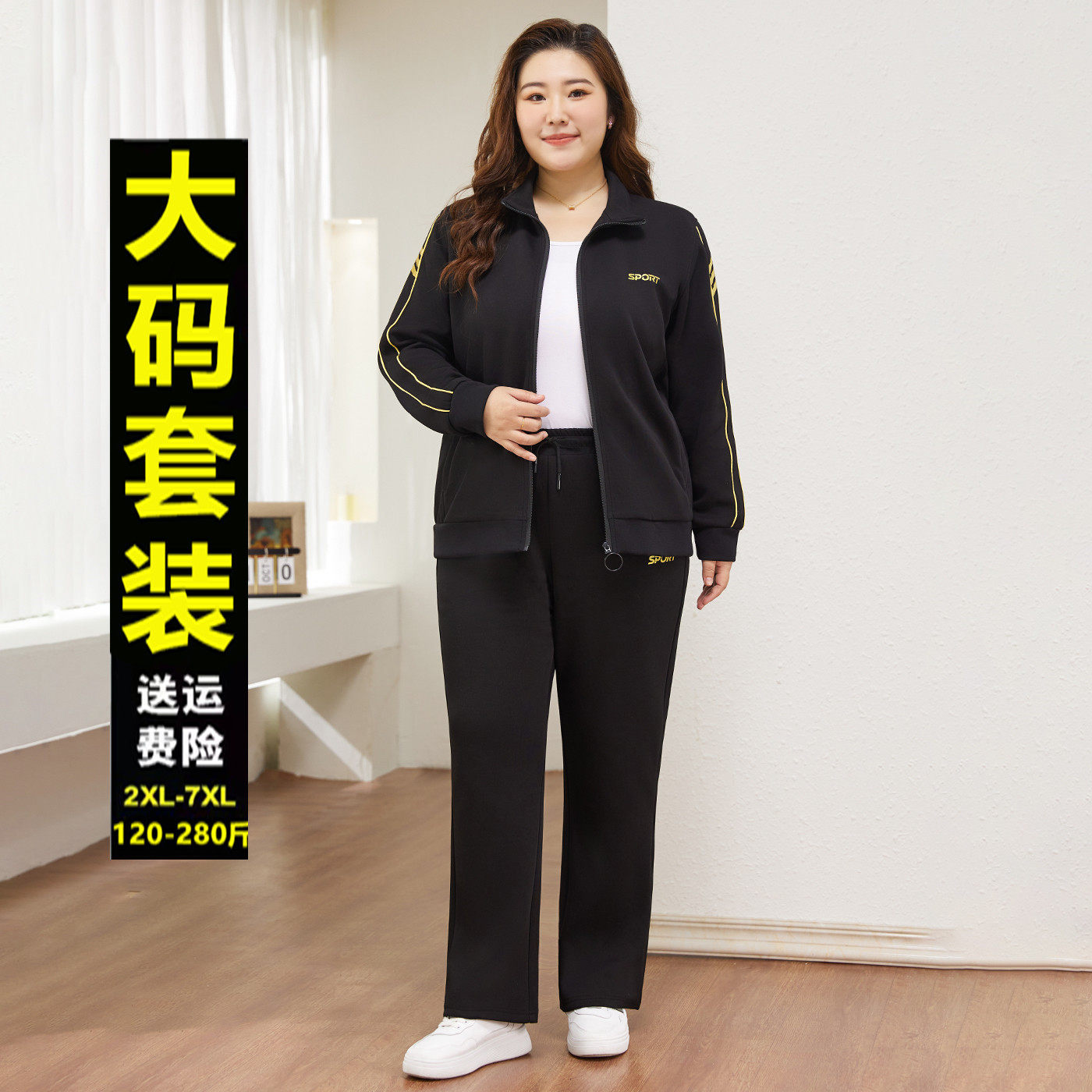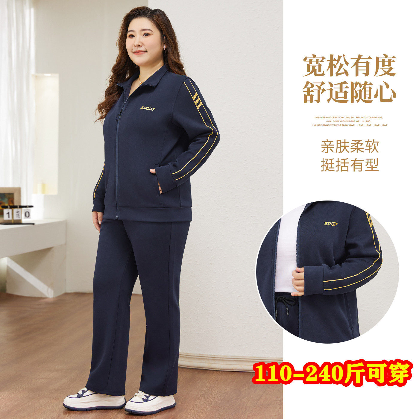 春季加肥大码胖mm女士宽松中年妈妈时尚外套运动服两件套装 200斤
