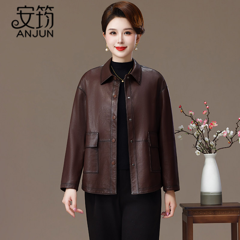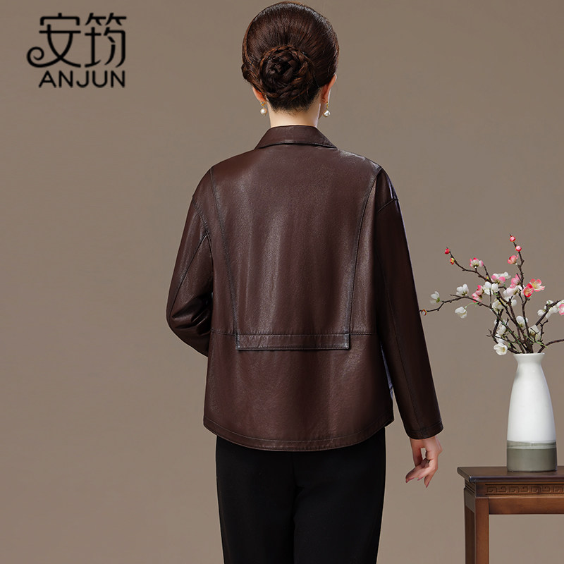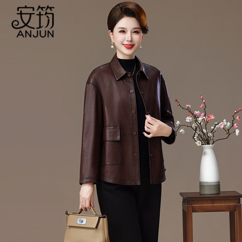 高端海宁真皮皮衣女款2026春秋新款正宗皮衣外套短款小个子妈妈装