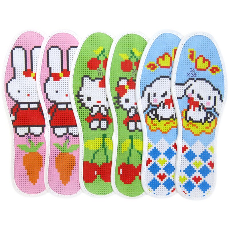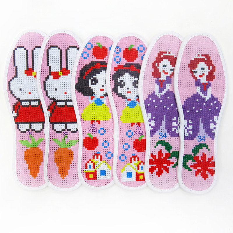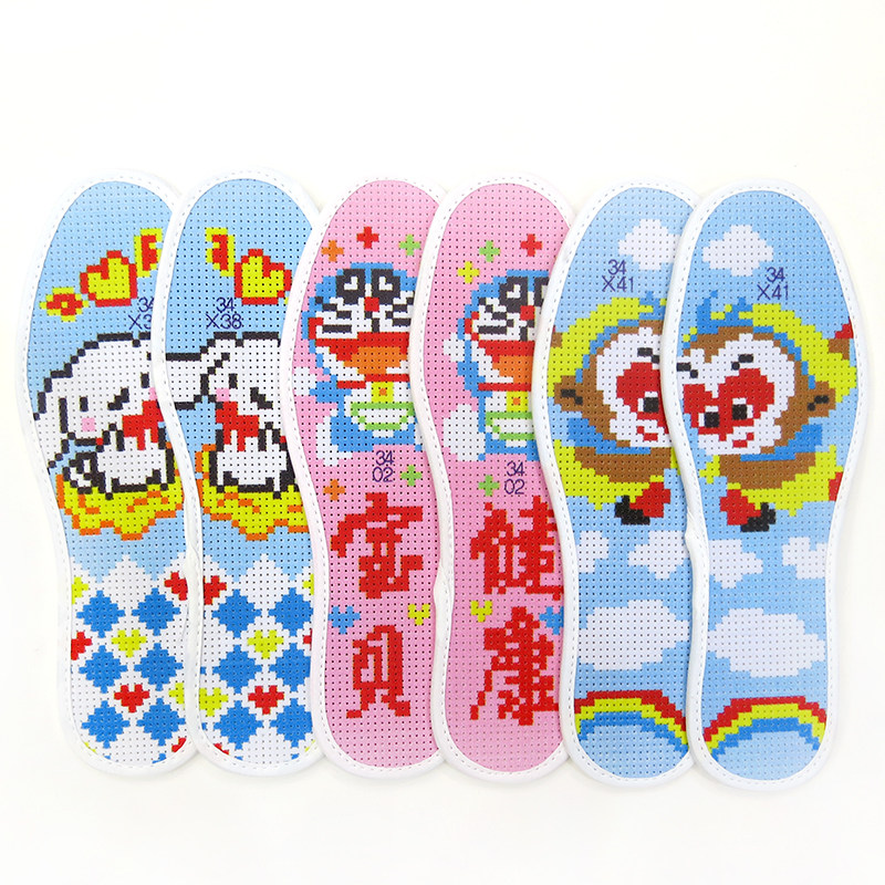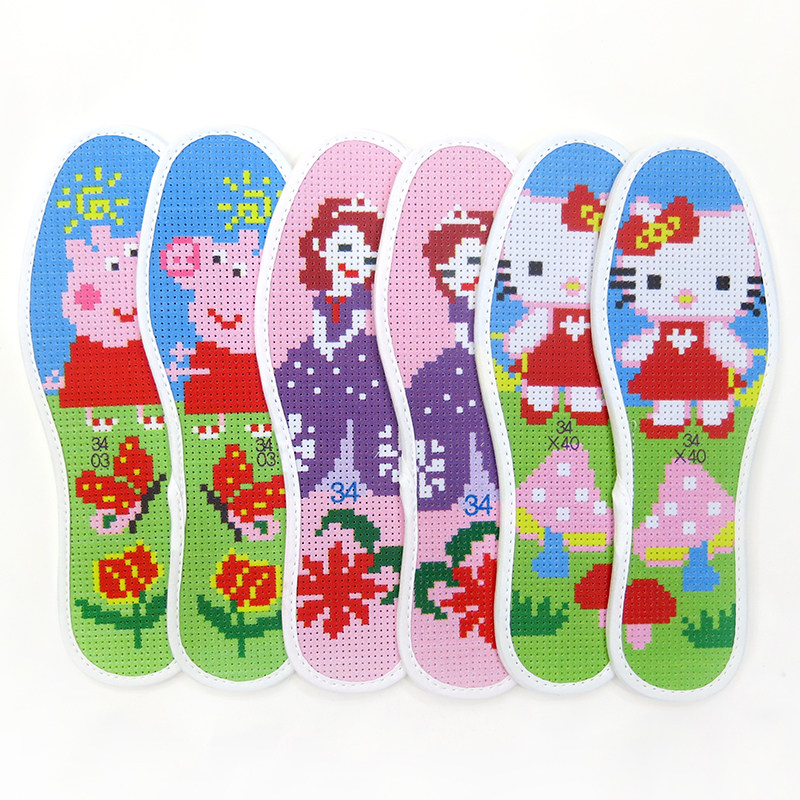 新款发邮政儿童十字绣鞋垫卡通印花半成品29-39女童男童透气吸汗
