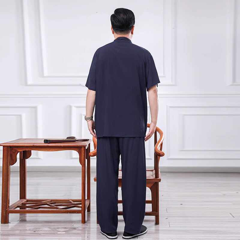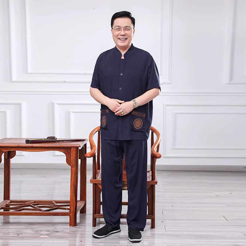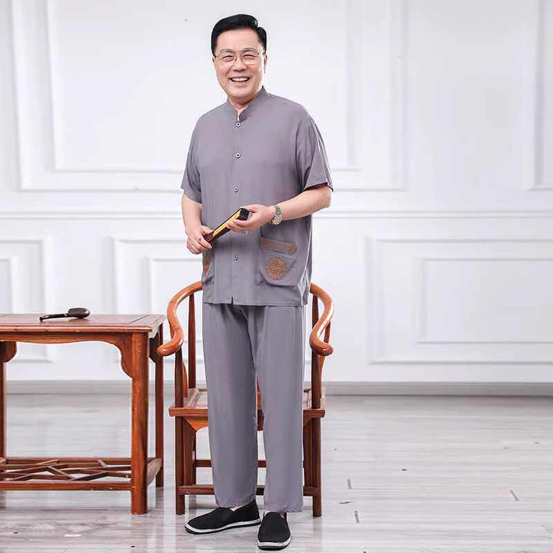 老爷爷开衫棉绸套装60岁70男装夏季人造棉睡衣男士中老年爸爸夏装