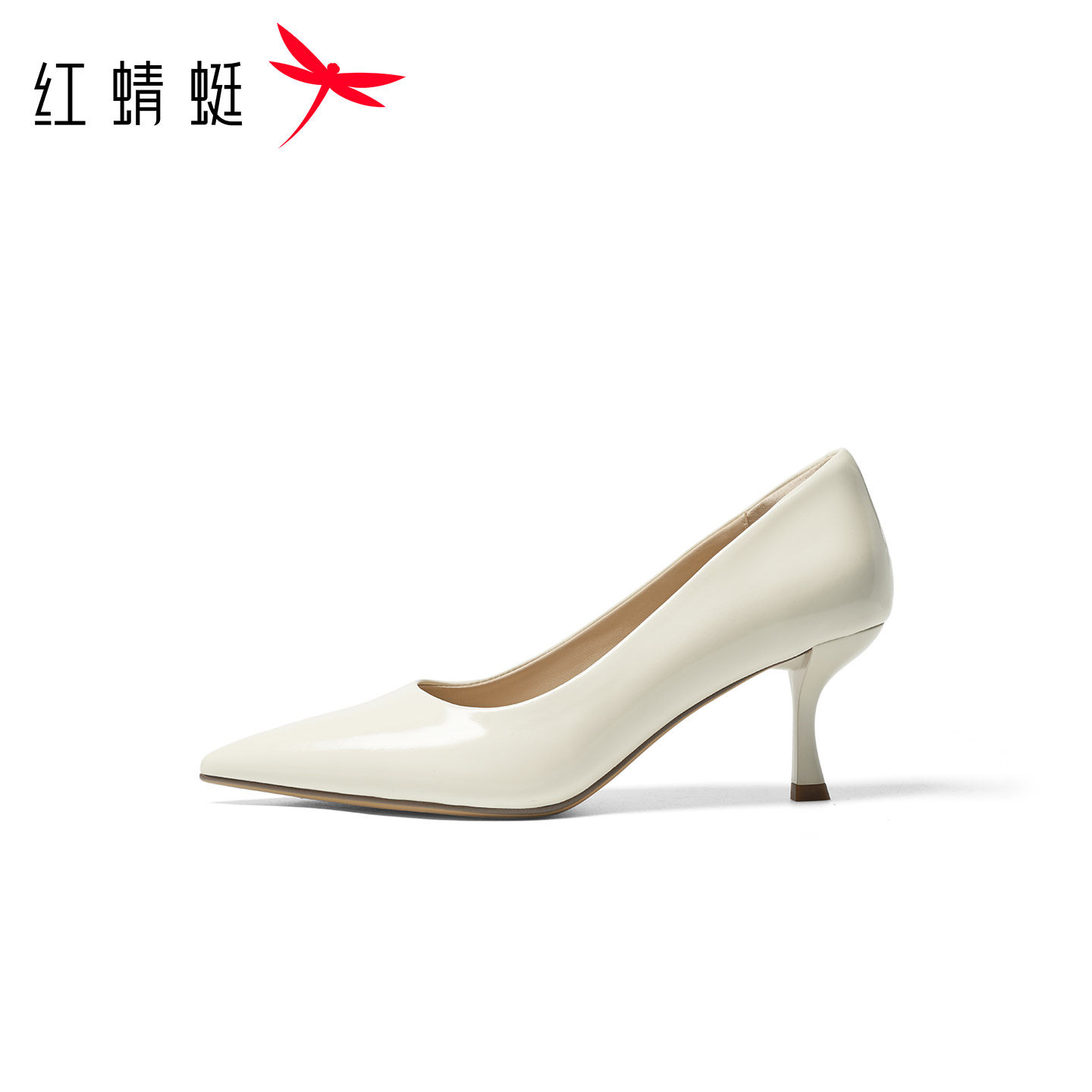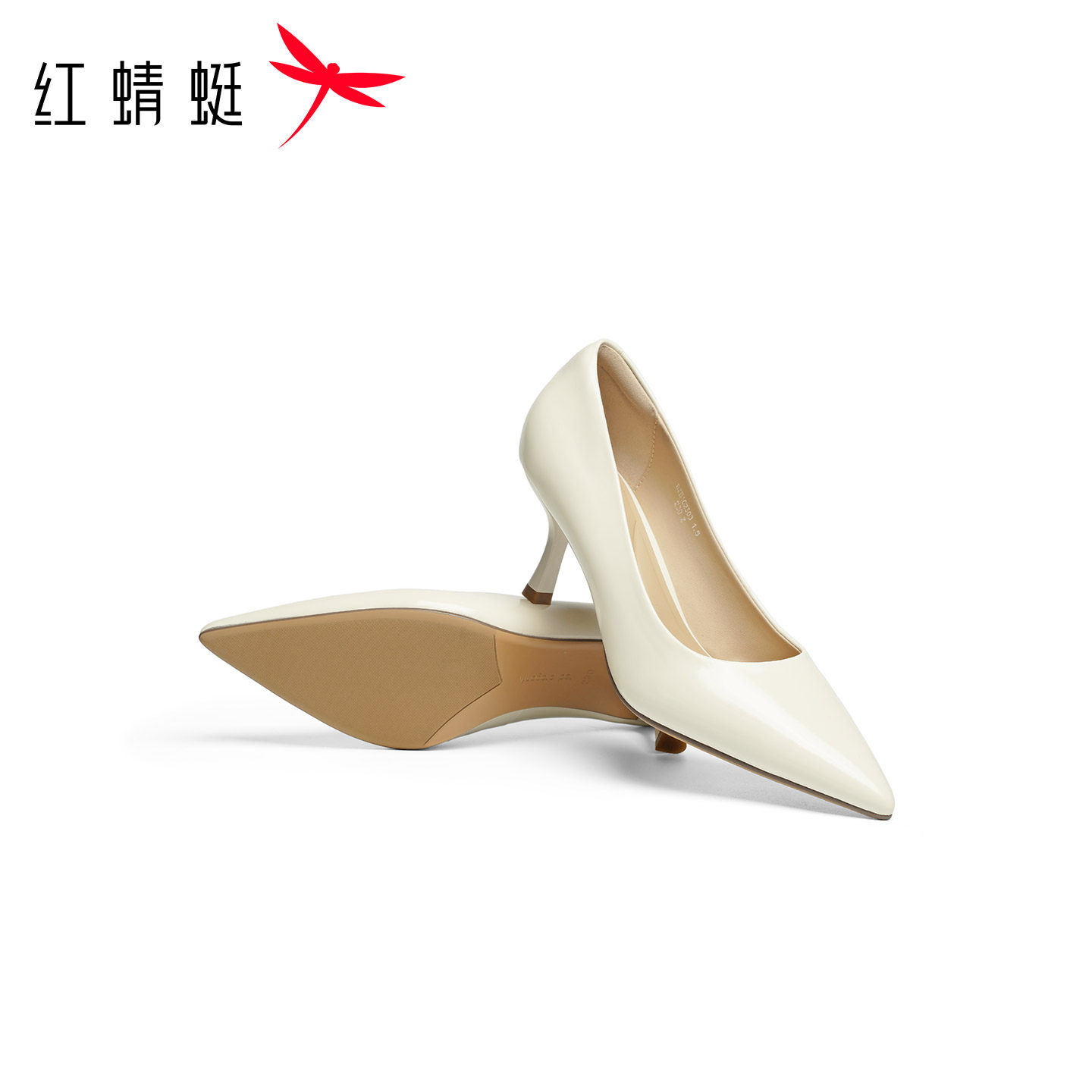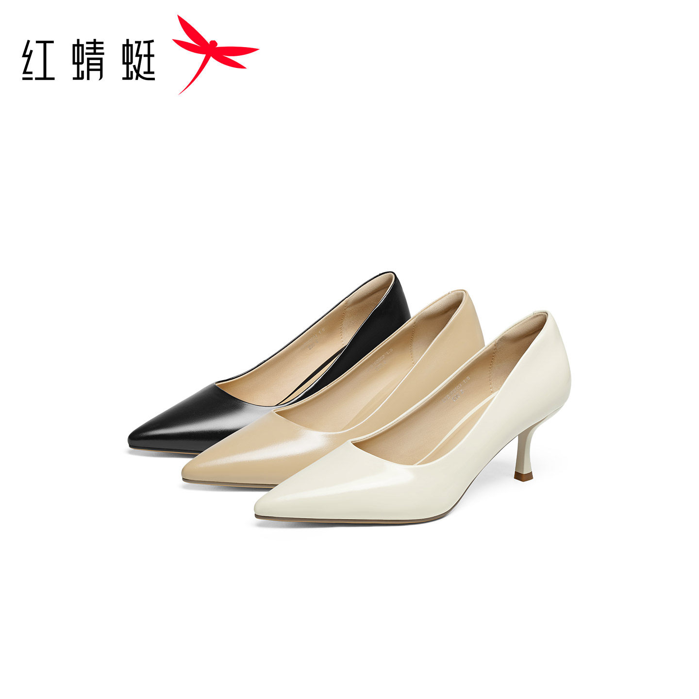 红蜻蜓高跟鞋2026春新款女鞋真皮不累脚黑色面试皮鞋公务尖头单鞋